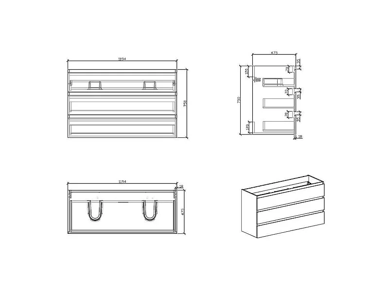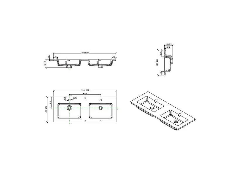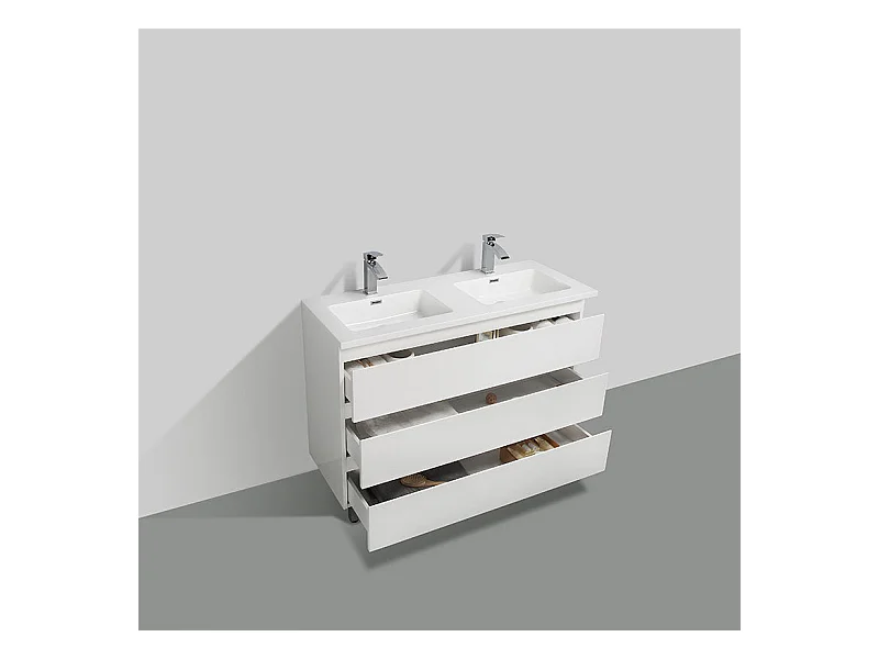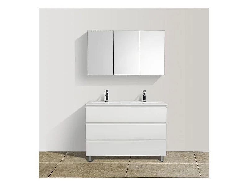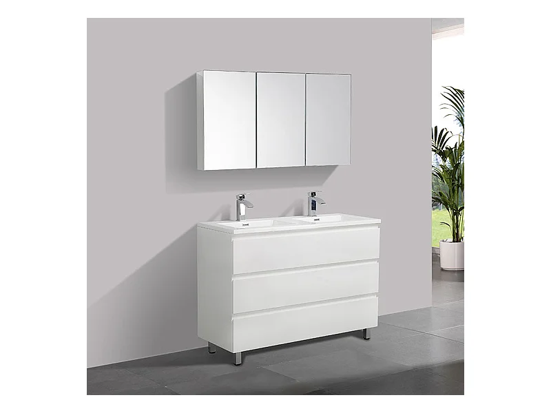 Meuble salle de bain design double vasque VERONA largeur 120 cm blanc laqué