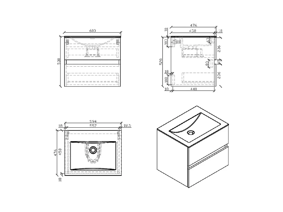 Meuble salle de bain design simple vasque SIENA largeur 60 cm noyer