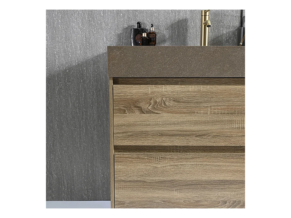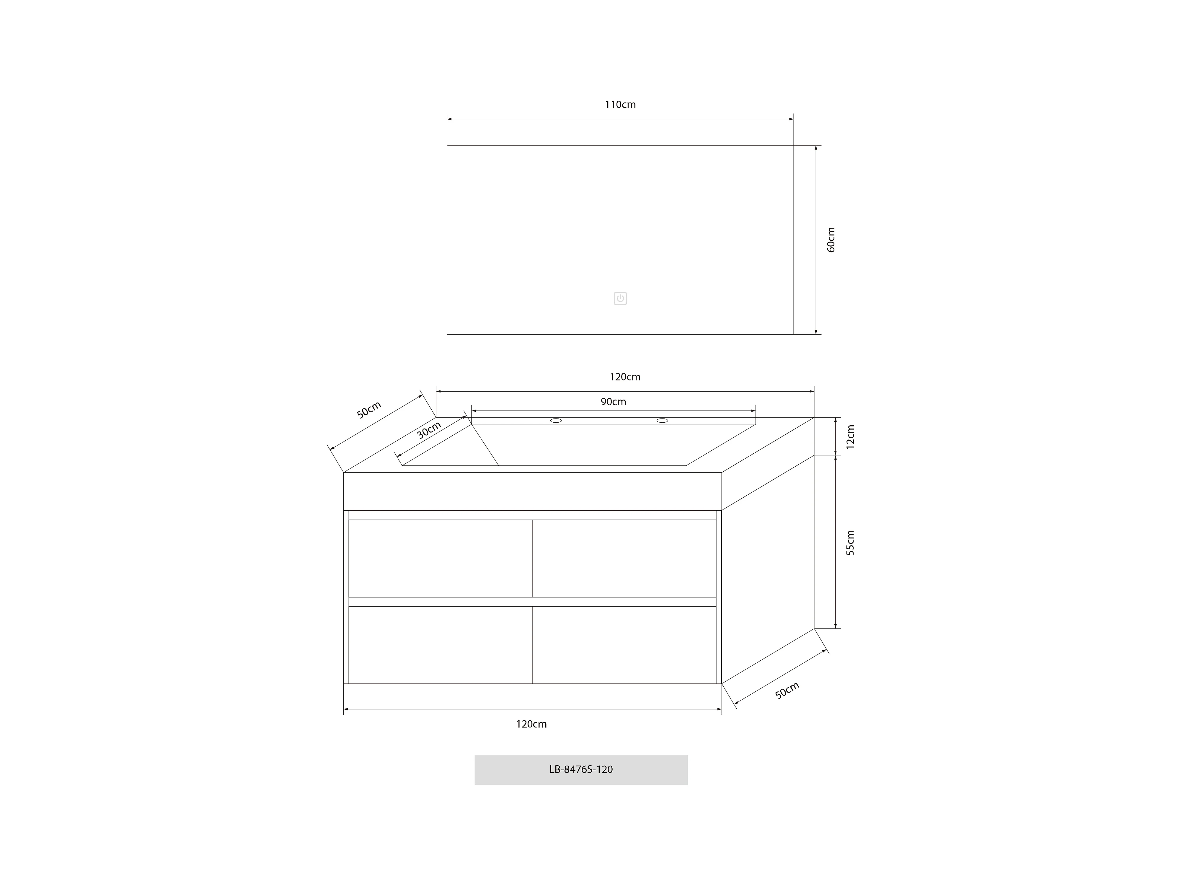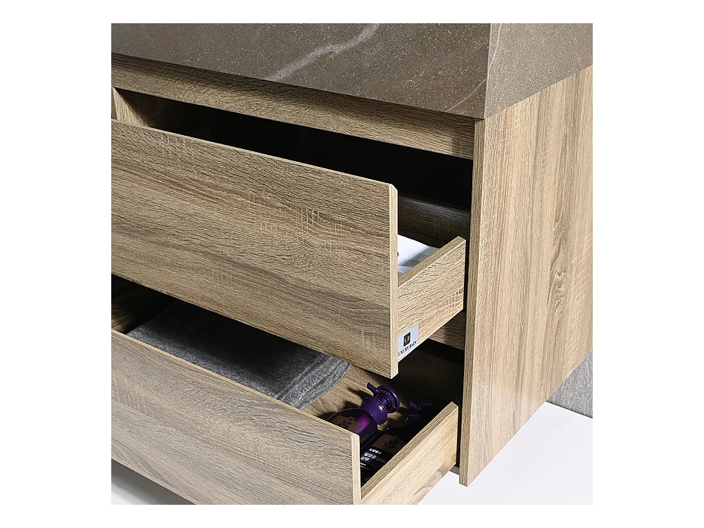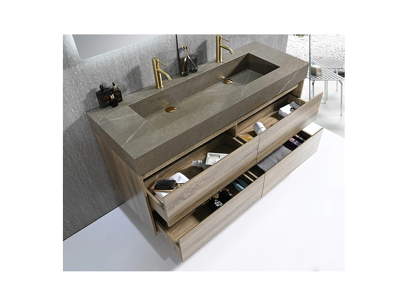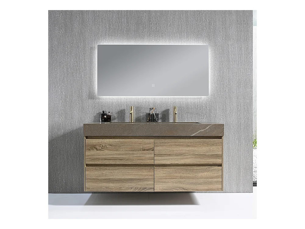 Meuble salle de bain double vasque 120cm bois et effet marbre marron avec miroir LED LB-8476M-120