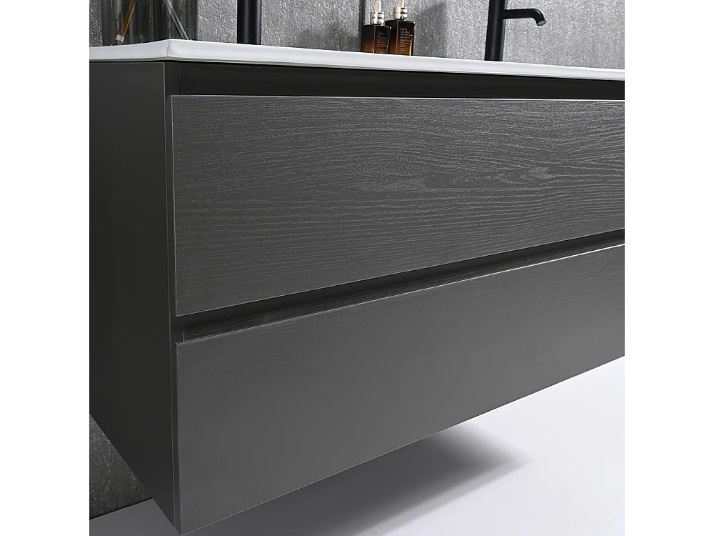 Meuble salle de bain double vasque 120cm gris et miroir LED LB-8331G