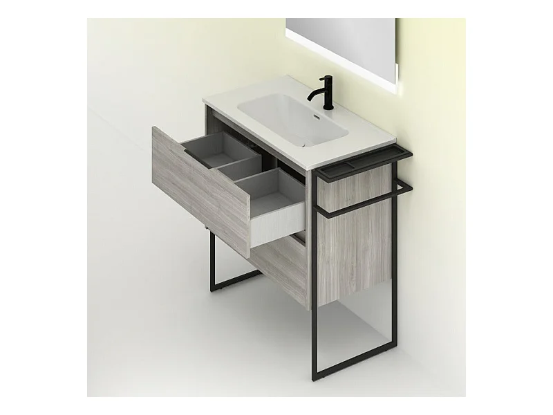Meuble salle de bain en bois et métal KEIKO gris sablé 100 cm