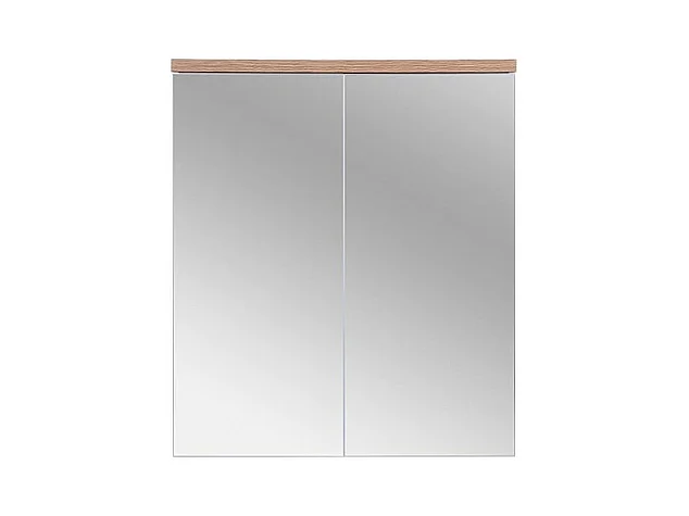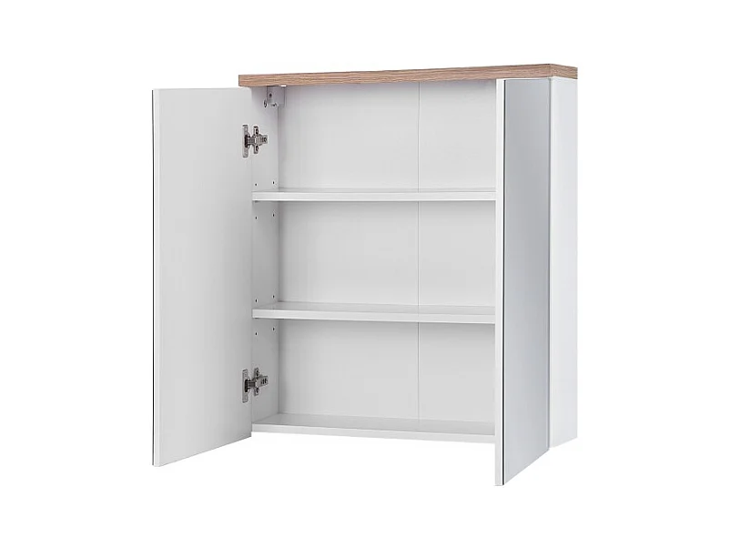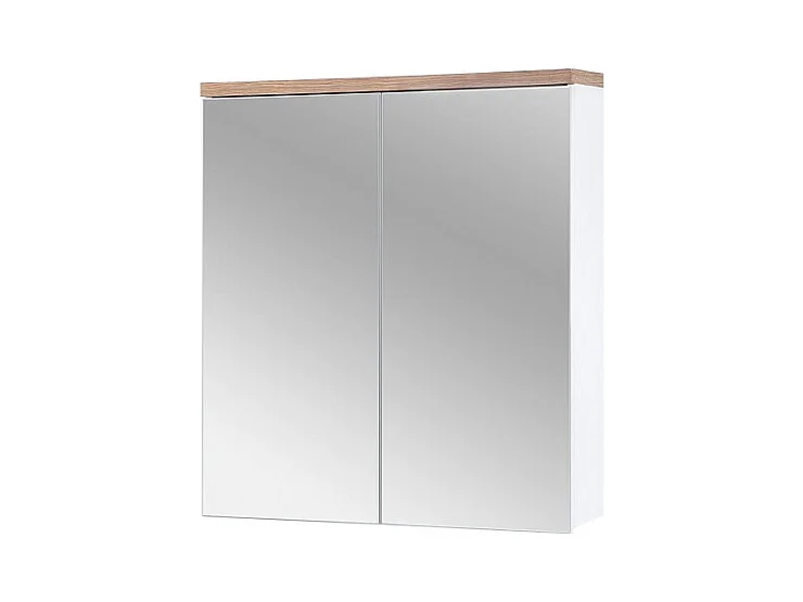 Meuble salle de bain ERMANO – Chêne clair et blanc brillant – 60x70 cm – 2 portes miroir – À suspendre