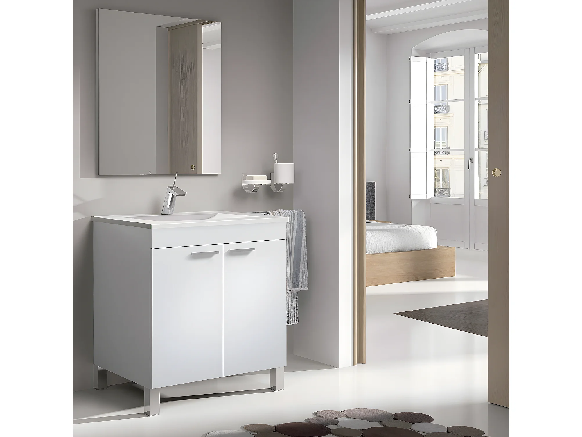 Meuble salle de bain Sous-vasque 60 cm avec 2 portes + Miroir coloris blanc brillant - H80 x Longueur 60 x Profondeur 45 cm