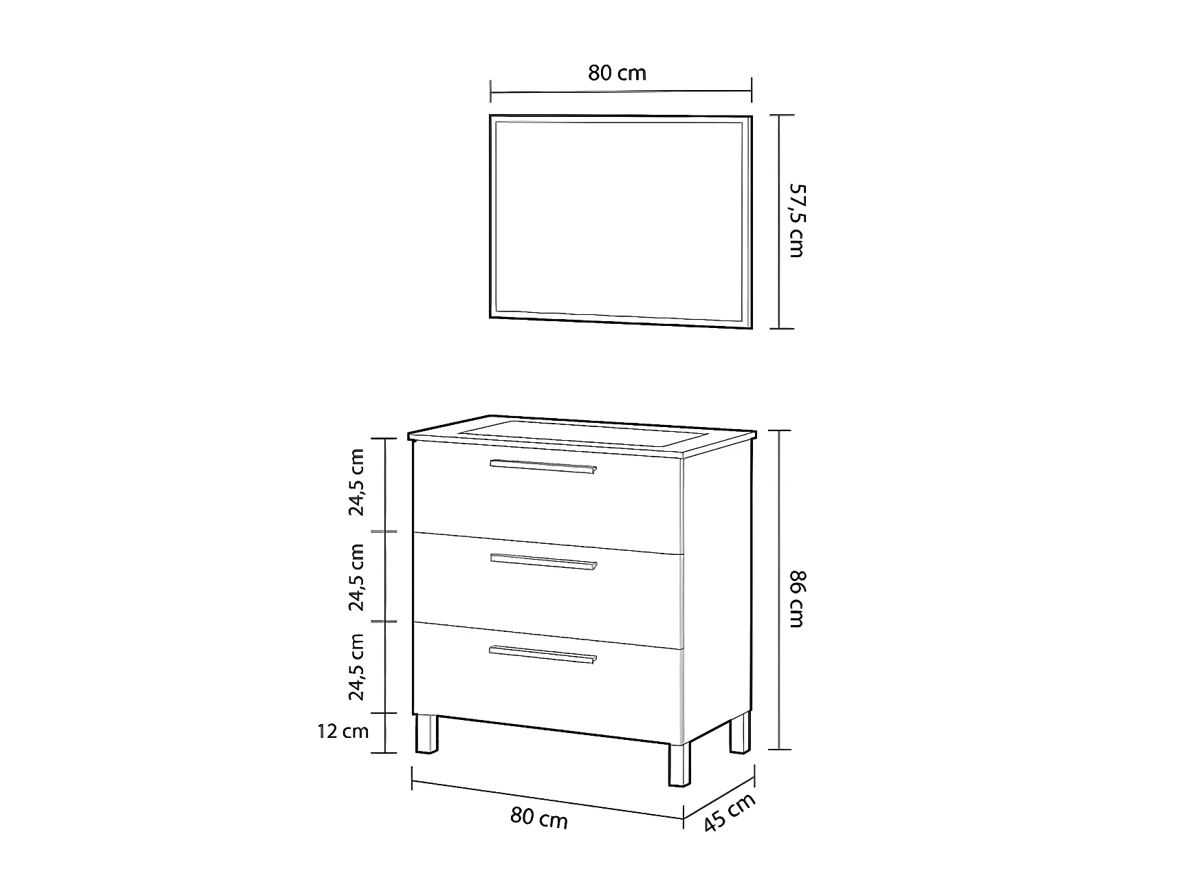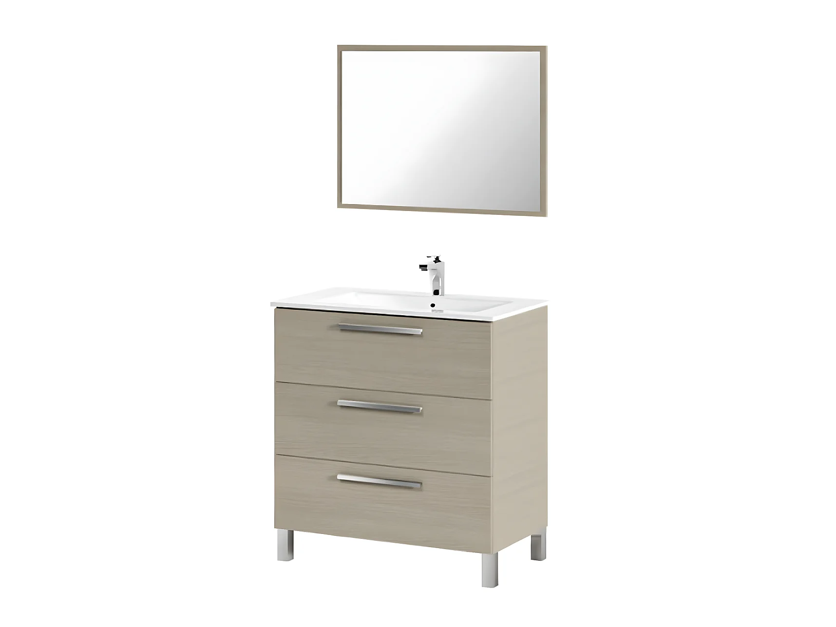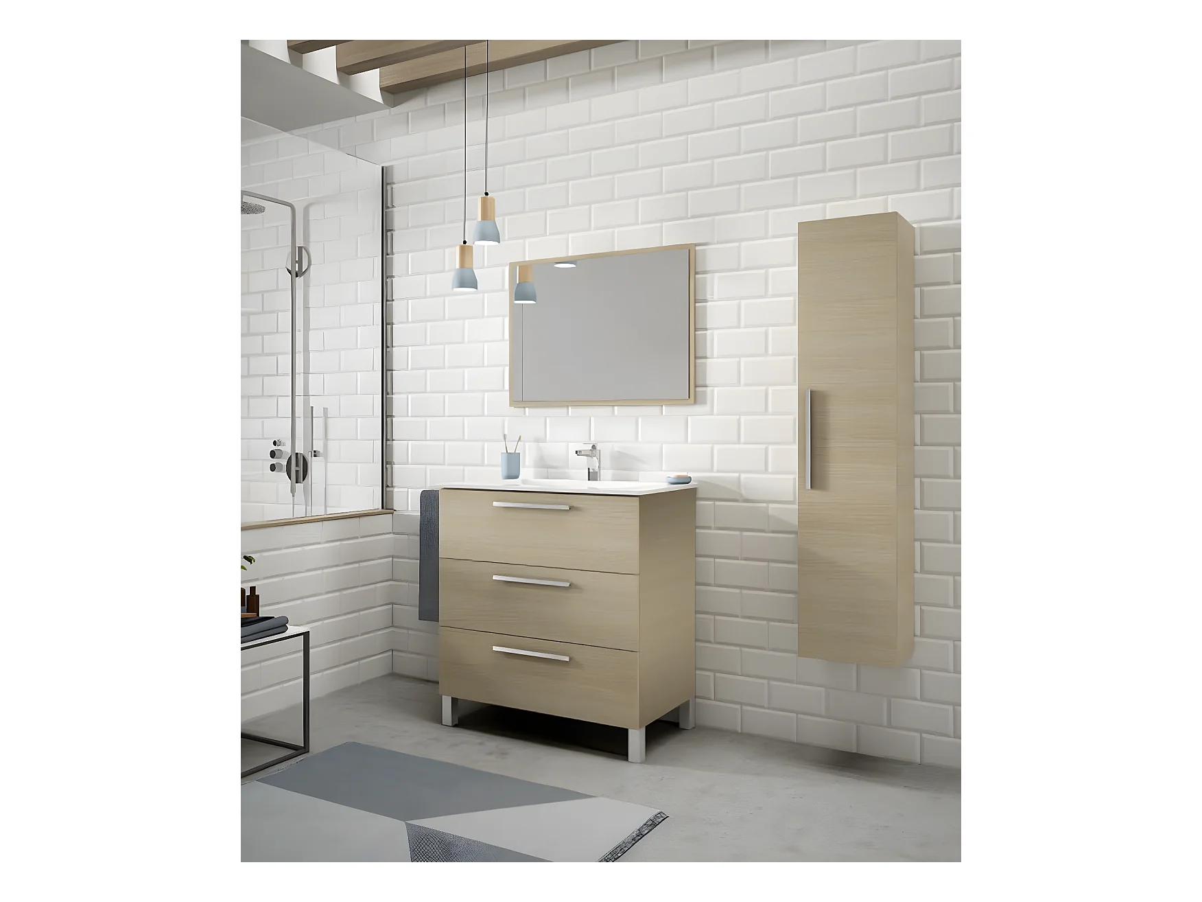 Meuble salle de bain sous vasque salle de bain avec 3 Tiroirs + 1 Miroir chêne clair - Longueur 80 x Profondeur 45 x Hauteur 86 cm