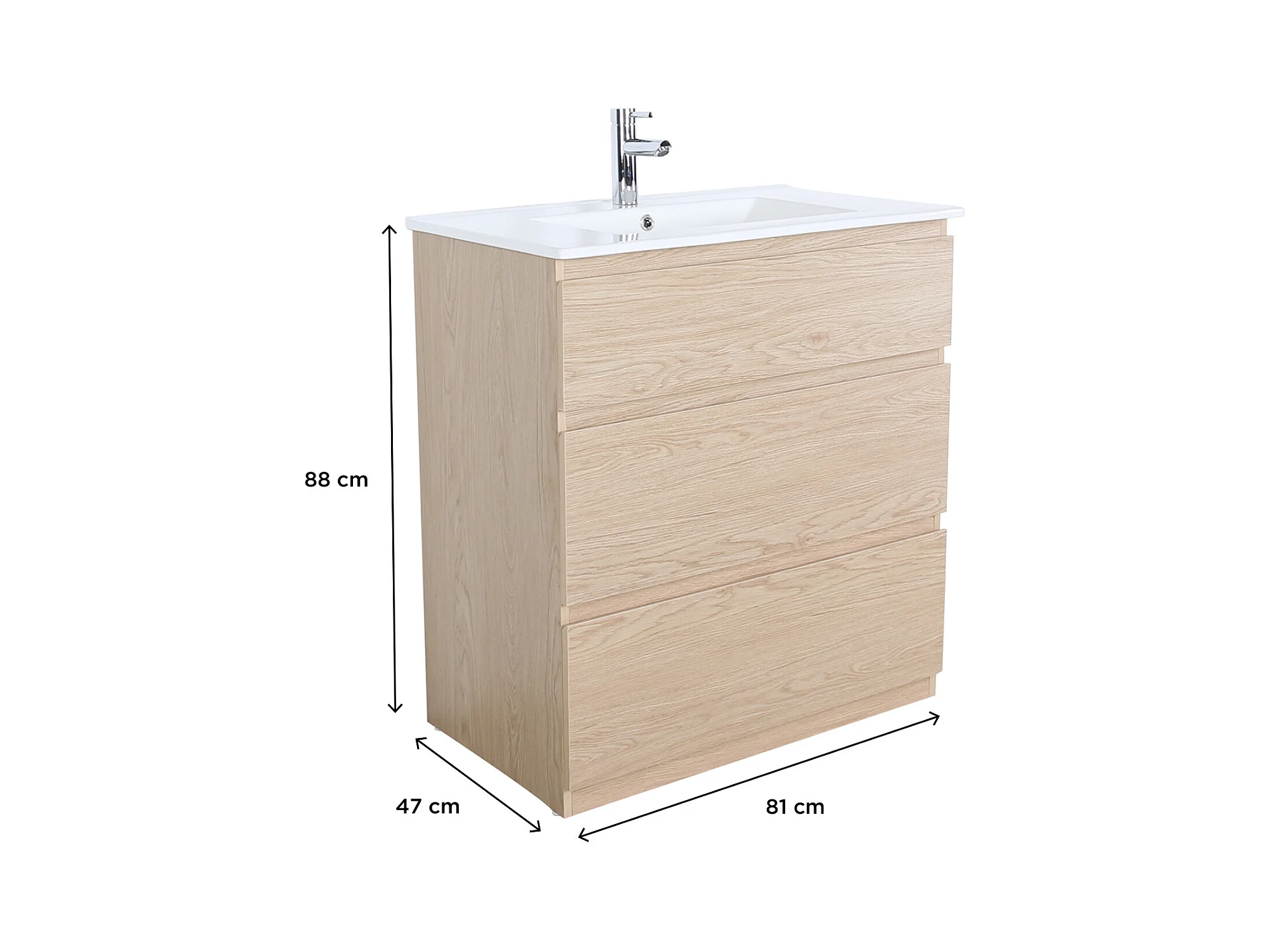 Meuble simple vasque 80cm - avec plan vasque céramique SORRENTO
