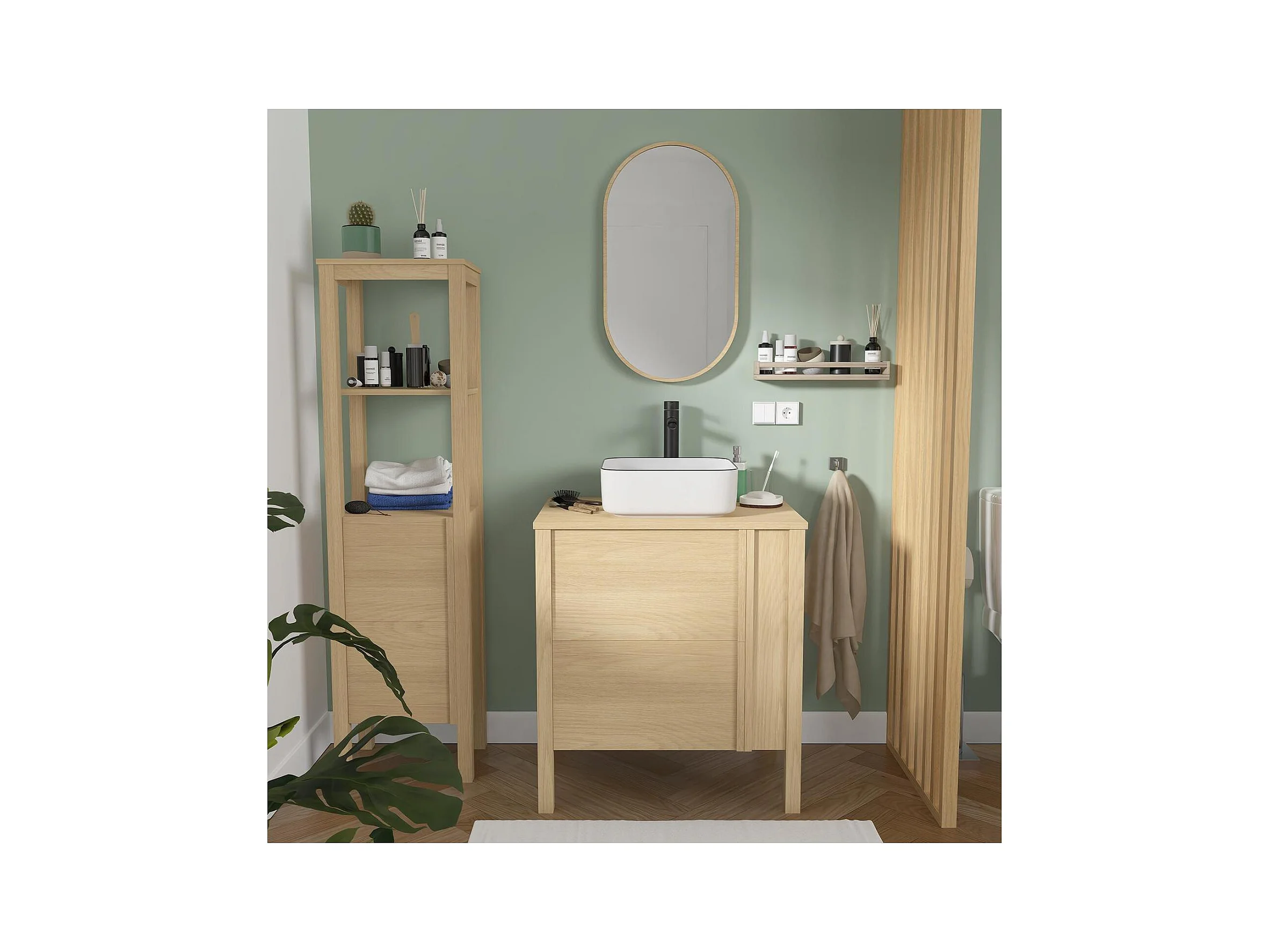 Meuble simple vasque chêne porte lisse 70 cm