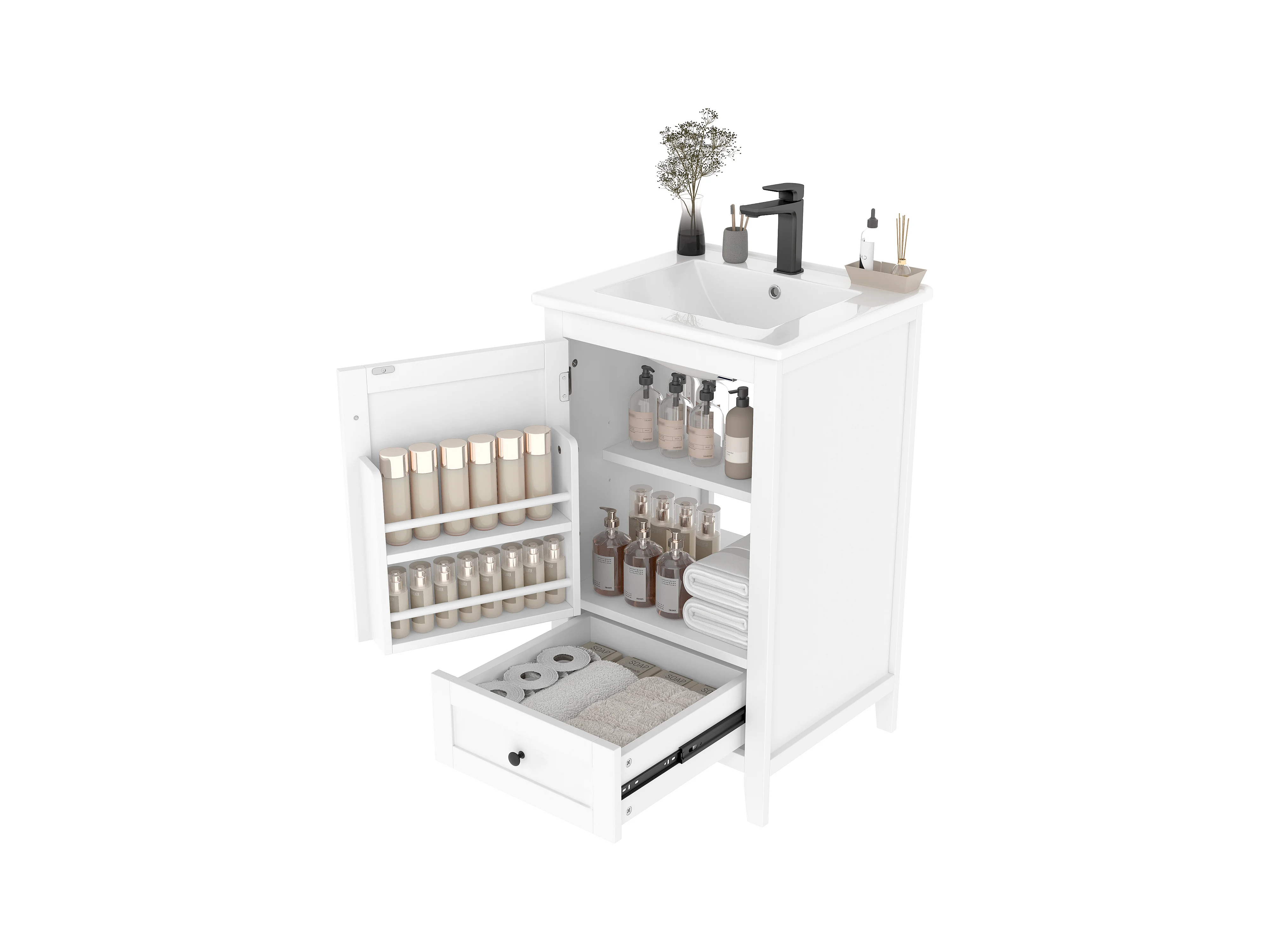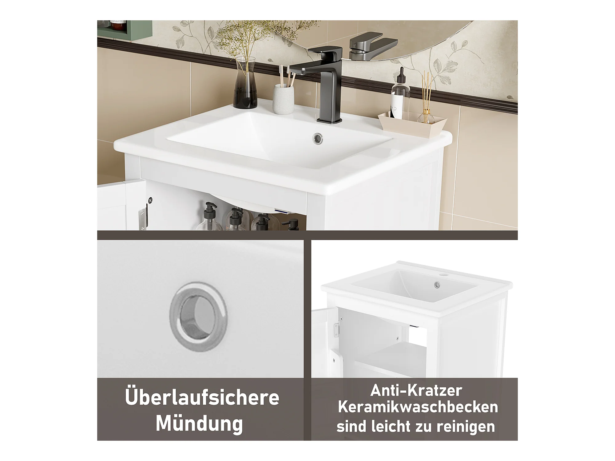Meuble simple vasque posé au sol - 51 x 46 x 85 cm - avec vasque céramique - avec rangements - Céramique + MDF - blanc (Robinet non inclus)
