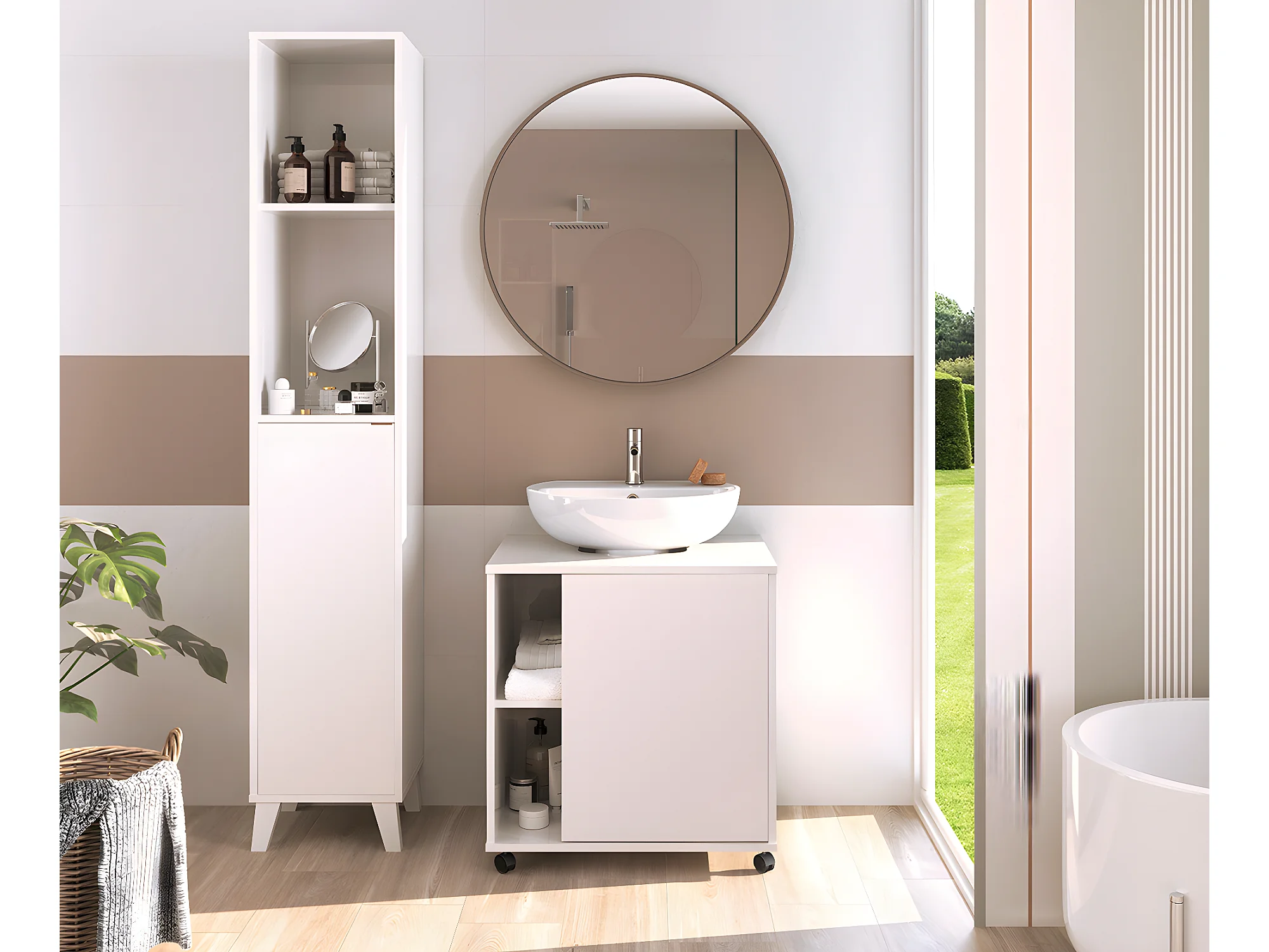 Meuble sous lavabo 1 porte couleur blanc brillant - Longueur 59 x Hauteur 64 x Profondeur 45 cm