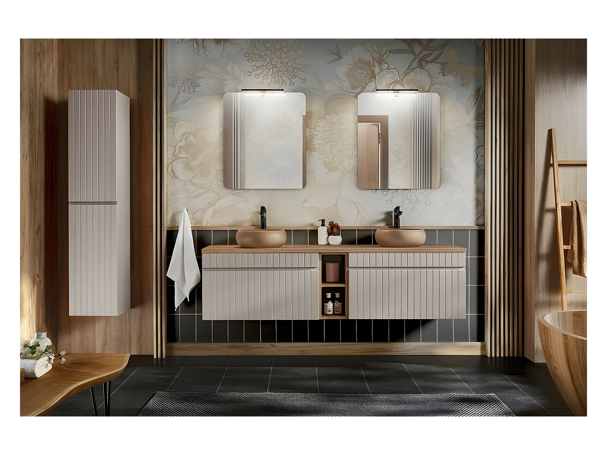 Meuble sous lavabo de salle de bain | AREA CACHEMIRE | L.80 - H.46 - P.45,6