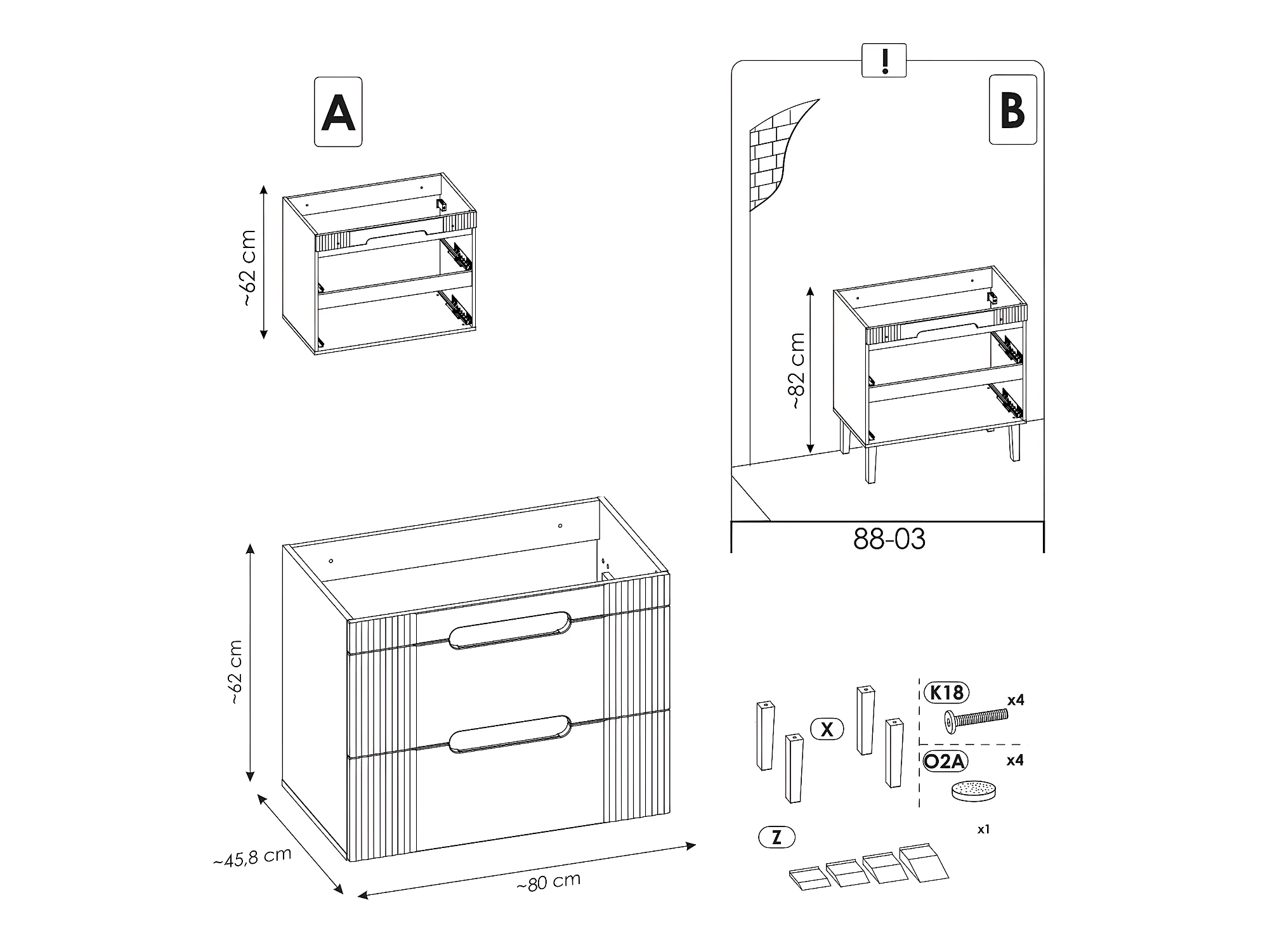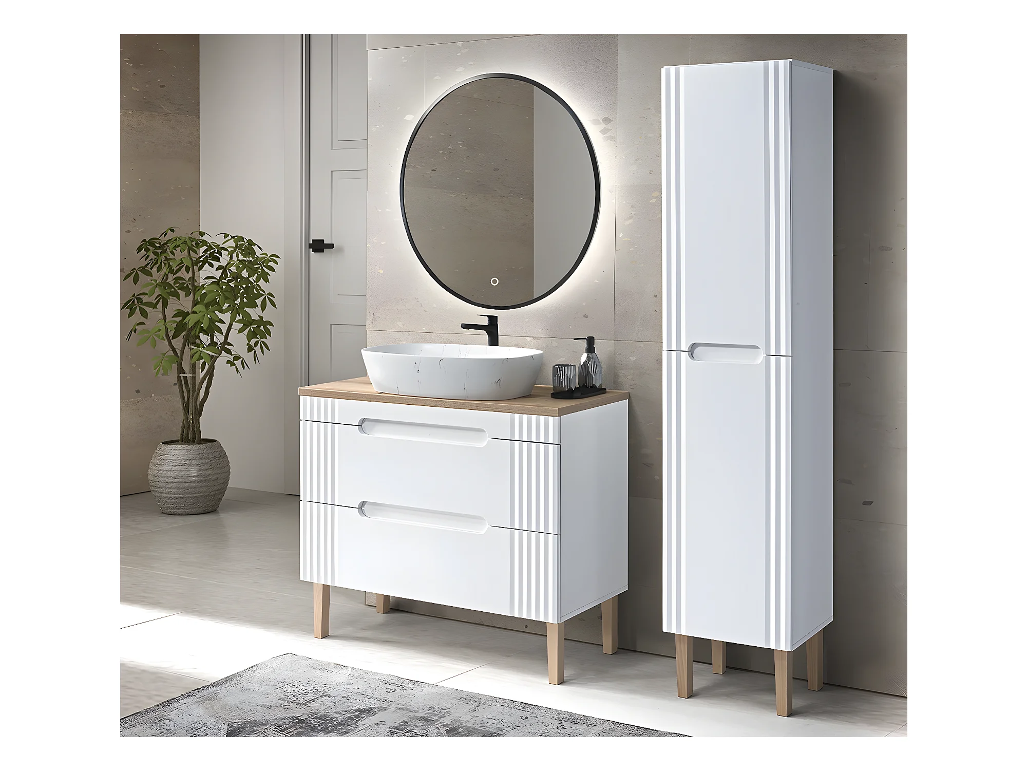 Meuble sous lavabo de salle de bain - Blanc alpin - L80-H62-P45,8 - FUJI