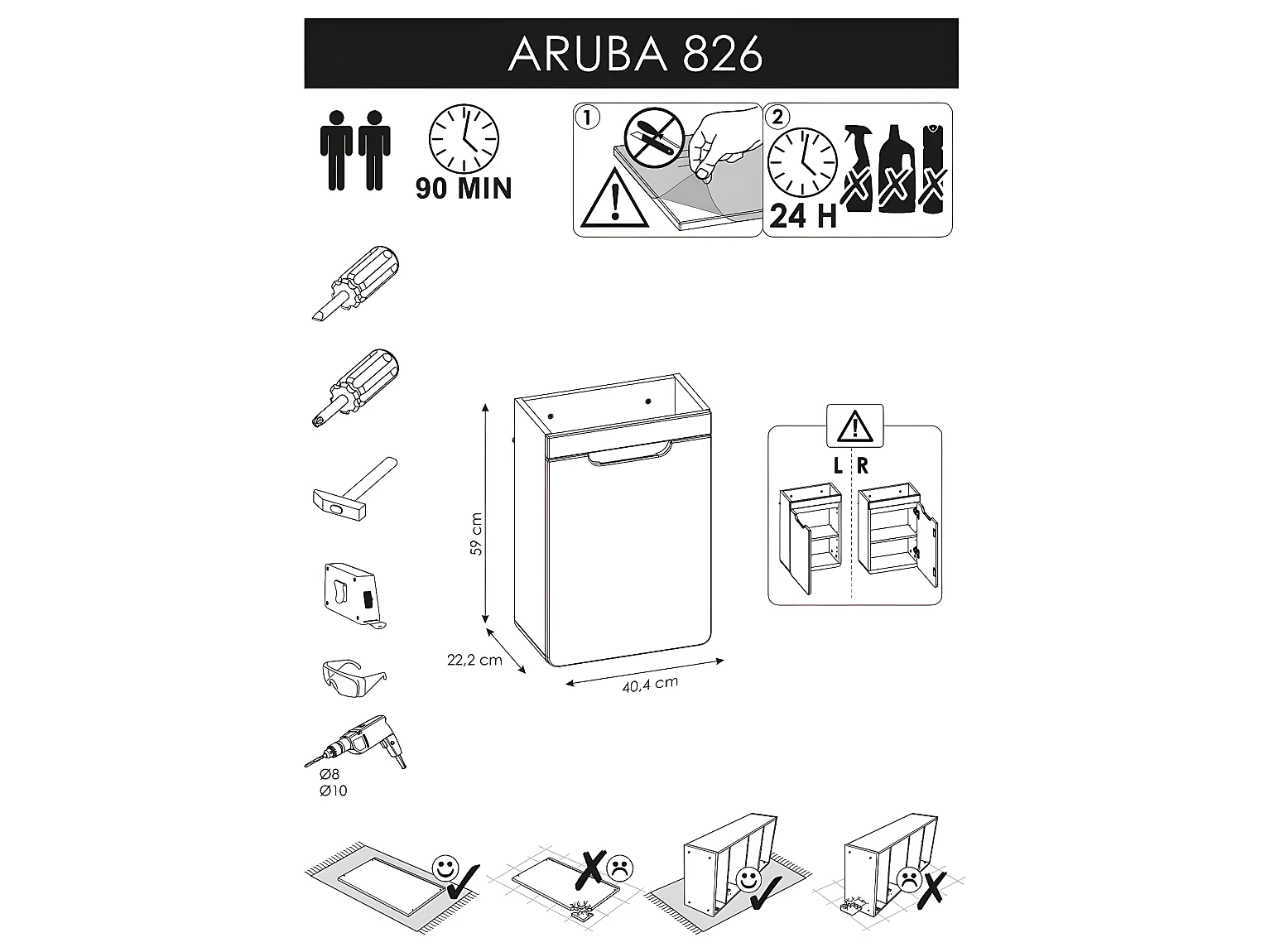 Meuble sous lavabo de salle de bain - Chêne artisanal doré et blanc brillant - L40-H60-P22 - ARRIBA