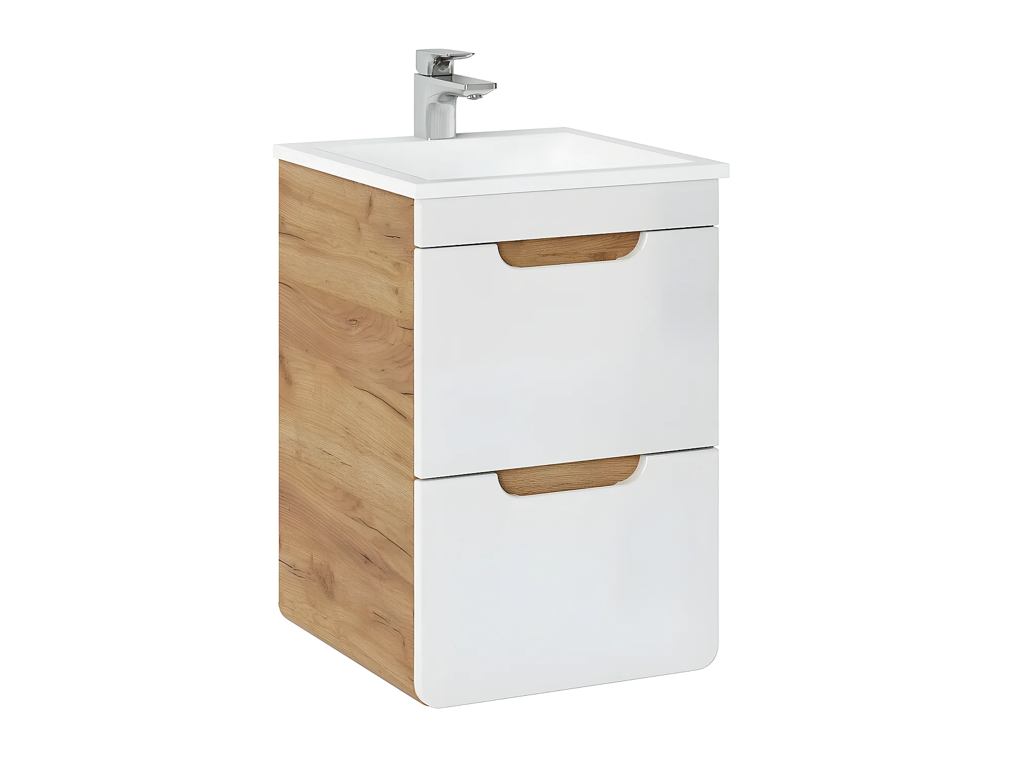 Meuble sous lavabo de salle de bain - Chêne artisanal doré et blanc brillant - L50-H59-P39 - ARRIBA