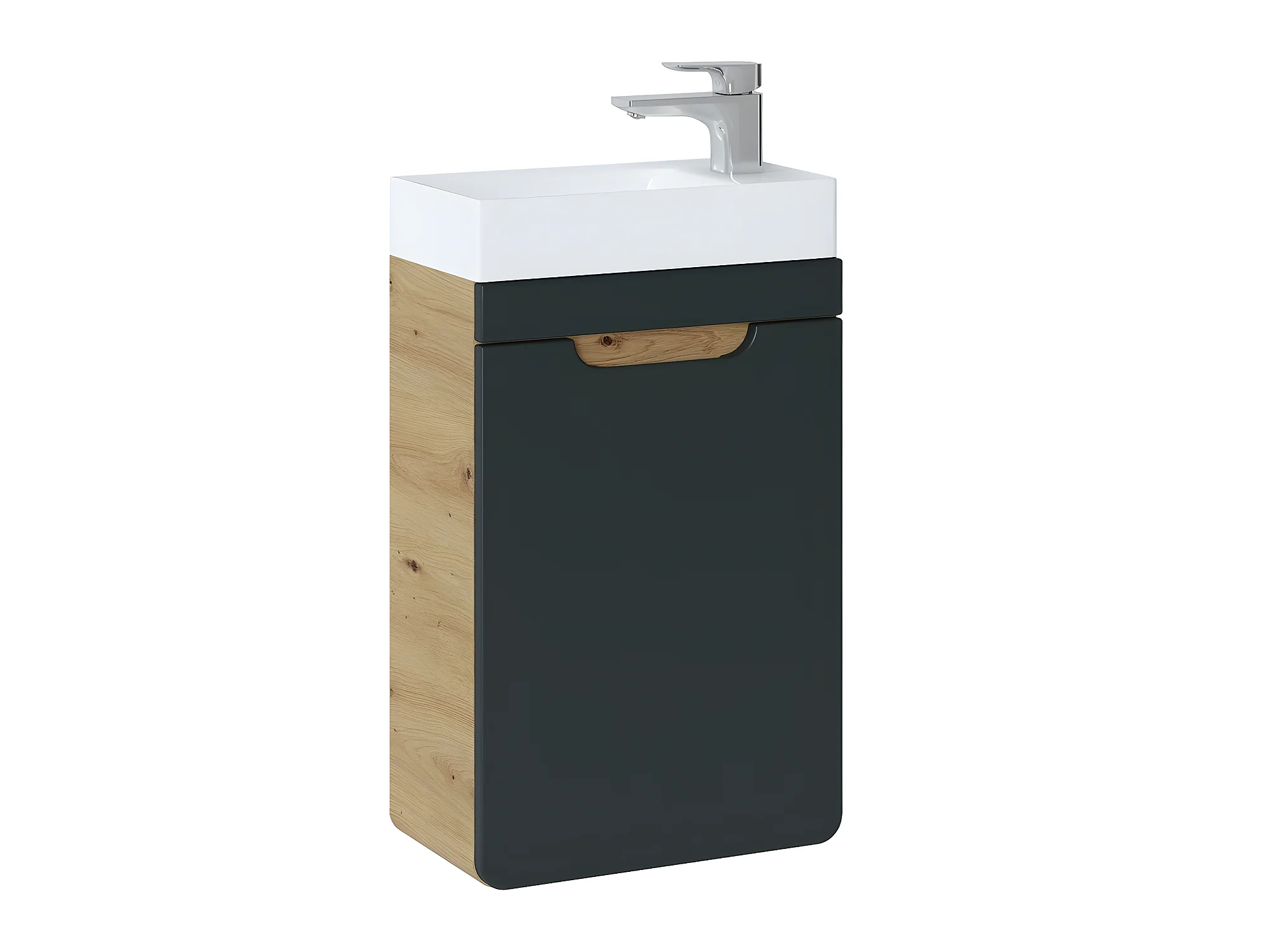 Meuble sous lavabo de salle de bain - Chêne artisanal doré et noir mat - L40-H60-P22 - ARRIBA