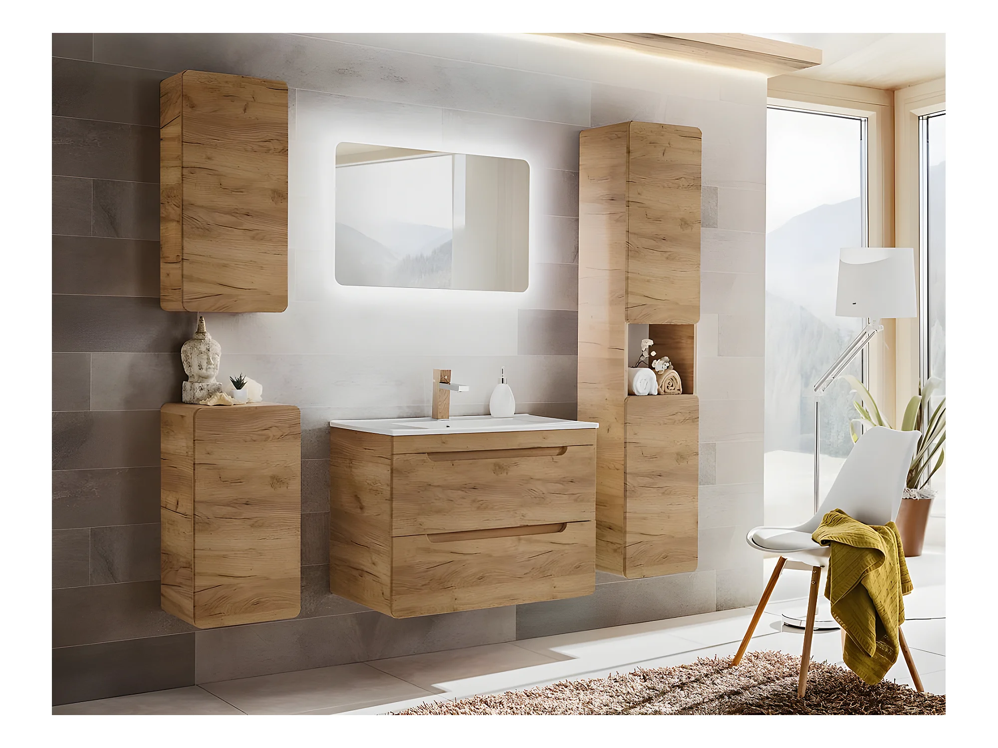 Meuble sous lavabo de salle de bain - Chêne artisanal doré - L40-H59-P41 - ARRIBA