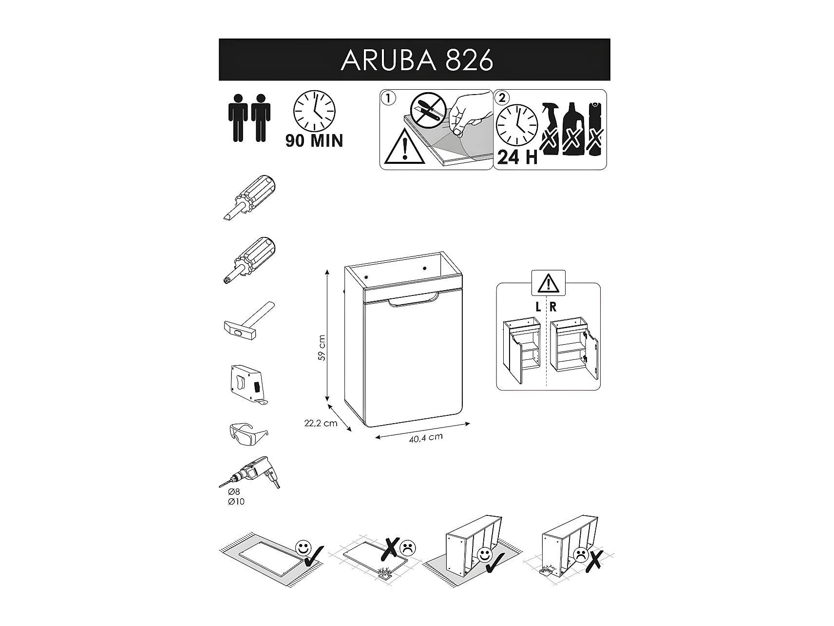 Meuble sous lavabo de salle de bain - Chêne artisanal doré - L40-H60-P22 - ARRIBA