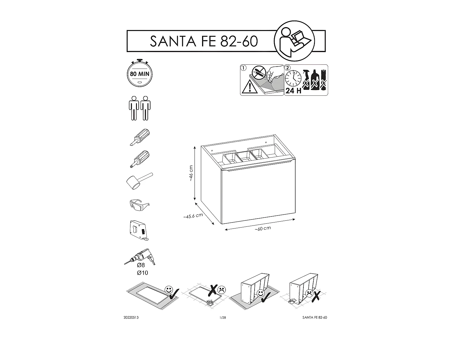 Meuble sous lavabo de salle de bain - Chêne Santa fe - L80-H46-P45,6 - KLAUS