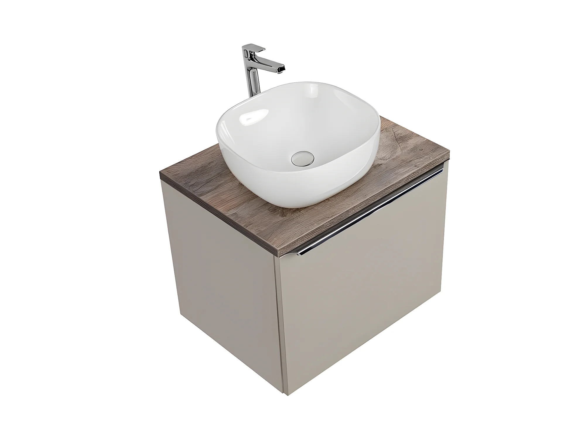 Meuble sous lavabo de salle de bain - Gris galet - L60-H46-P45,6 - KLAUS