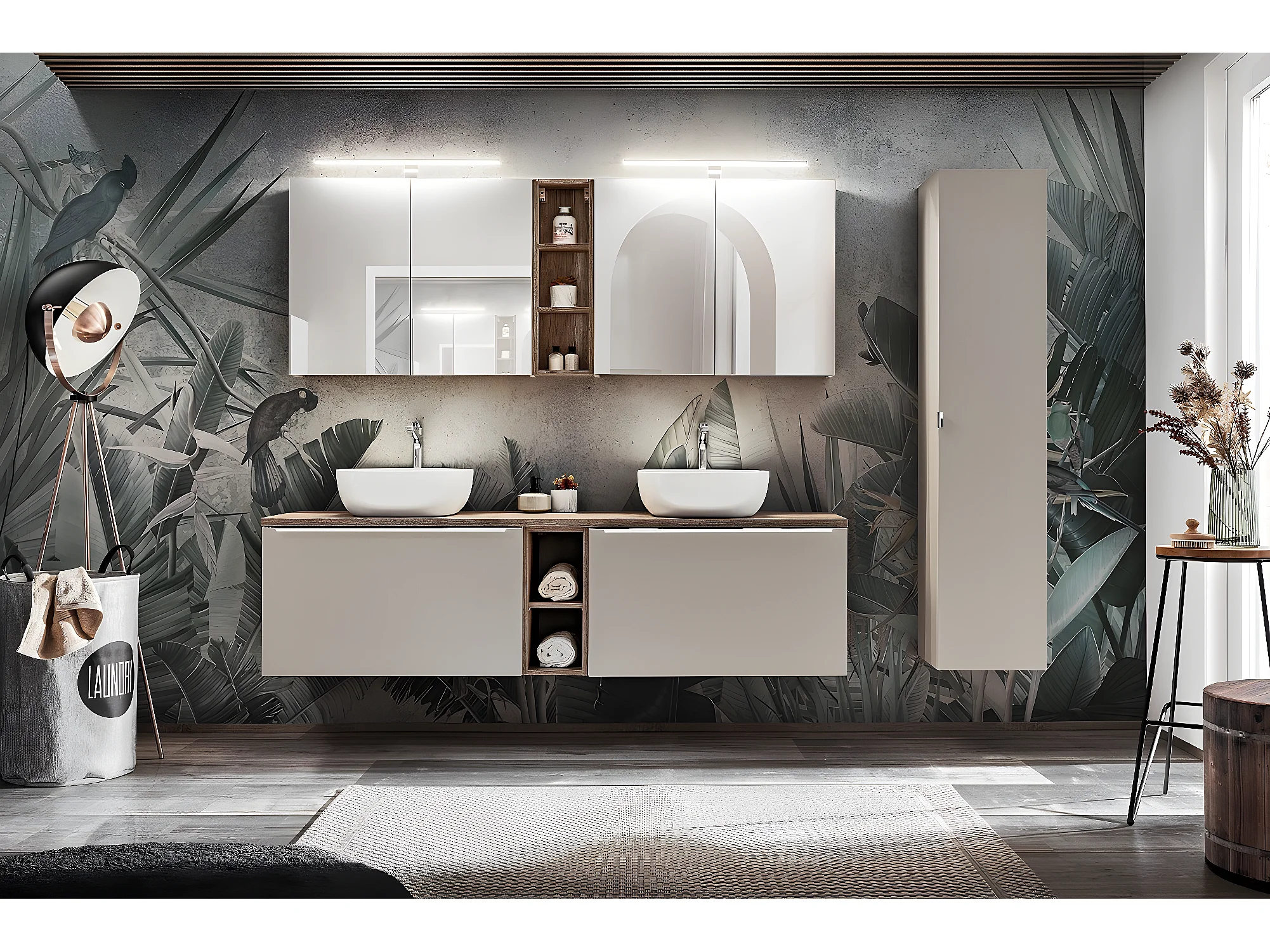 Meuble sous lavabo de salle de bain - Gris galet - L80-H46-P45,6 - KLAUS
