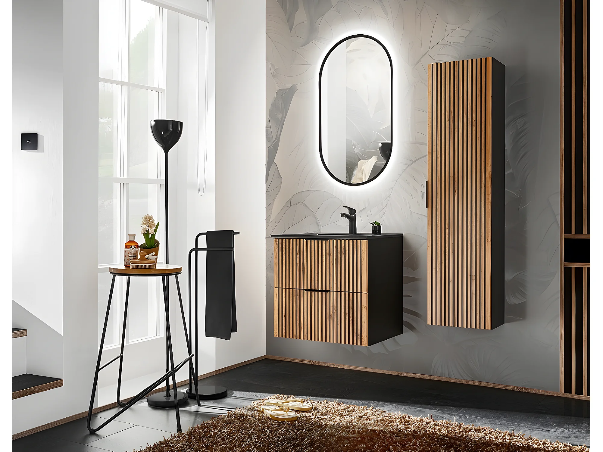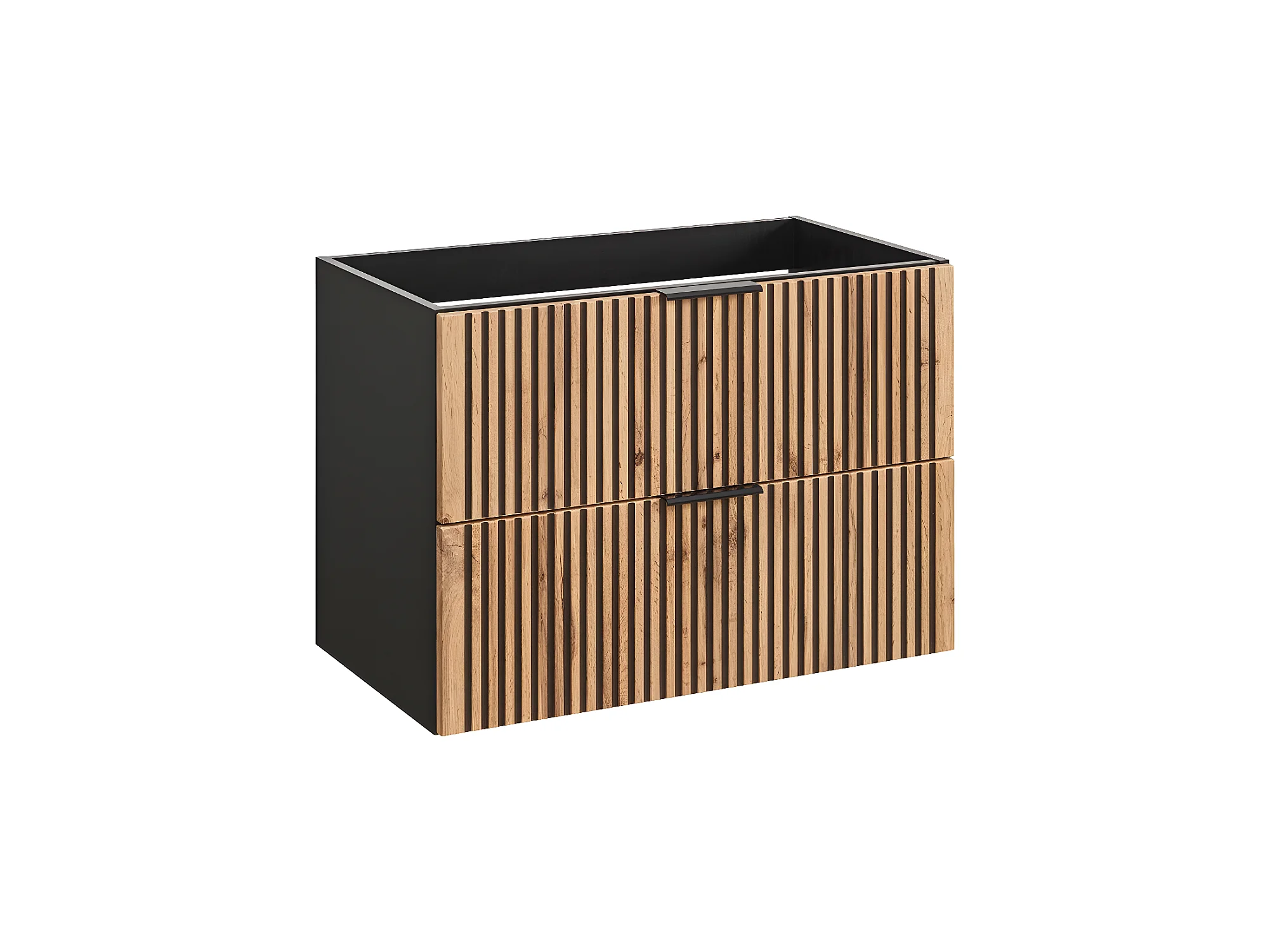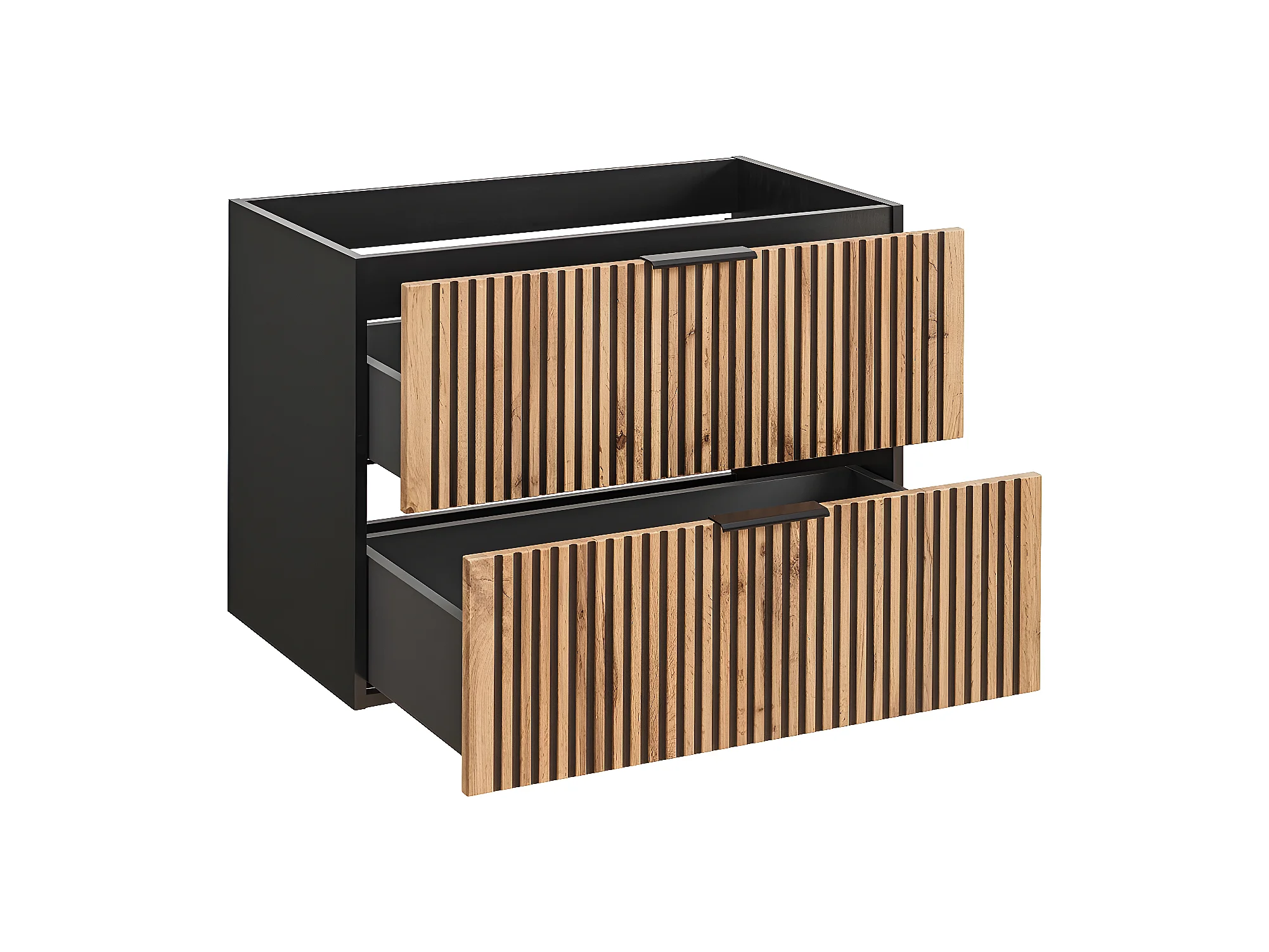 Meuble sous lavabo de salle de bain - Gris roche et chêne Wotan - L80-H57-P46 - LUXILO