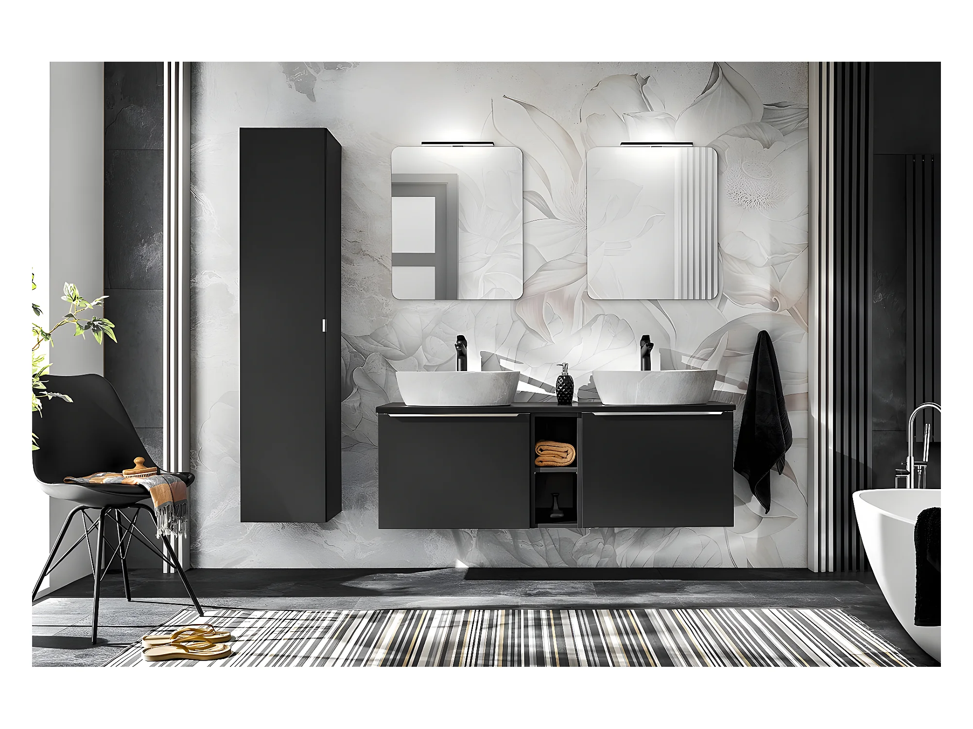 Meuble sous lavabo de salle de bain - Noir - L60-H46-P45,6 - KLAUS