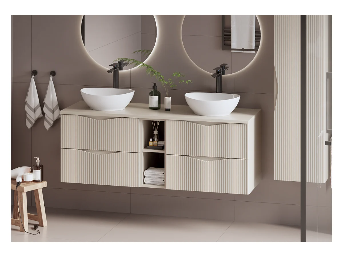 Meuble sous-vasque 140cm 2 niches plan de toilette Tao Cachemire