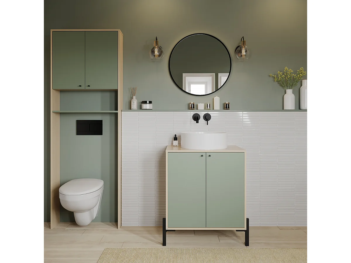 Ensemble 2 meubles salle de bain LUCIANO bois clair et vert