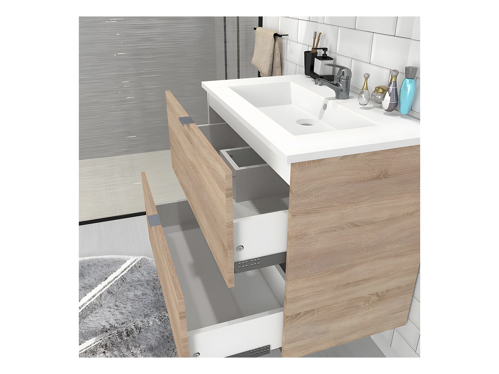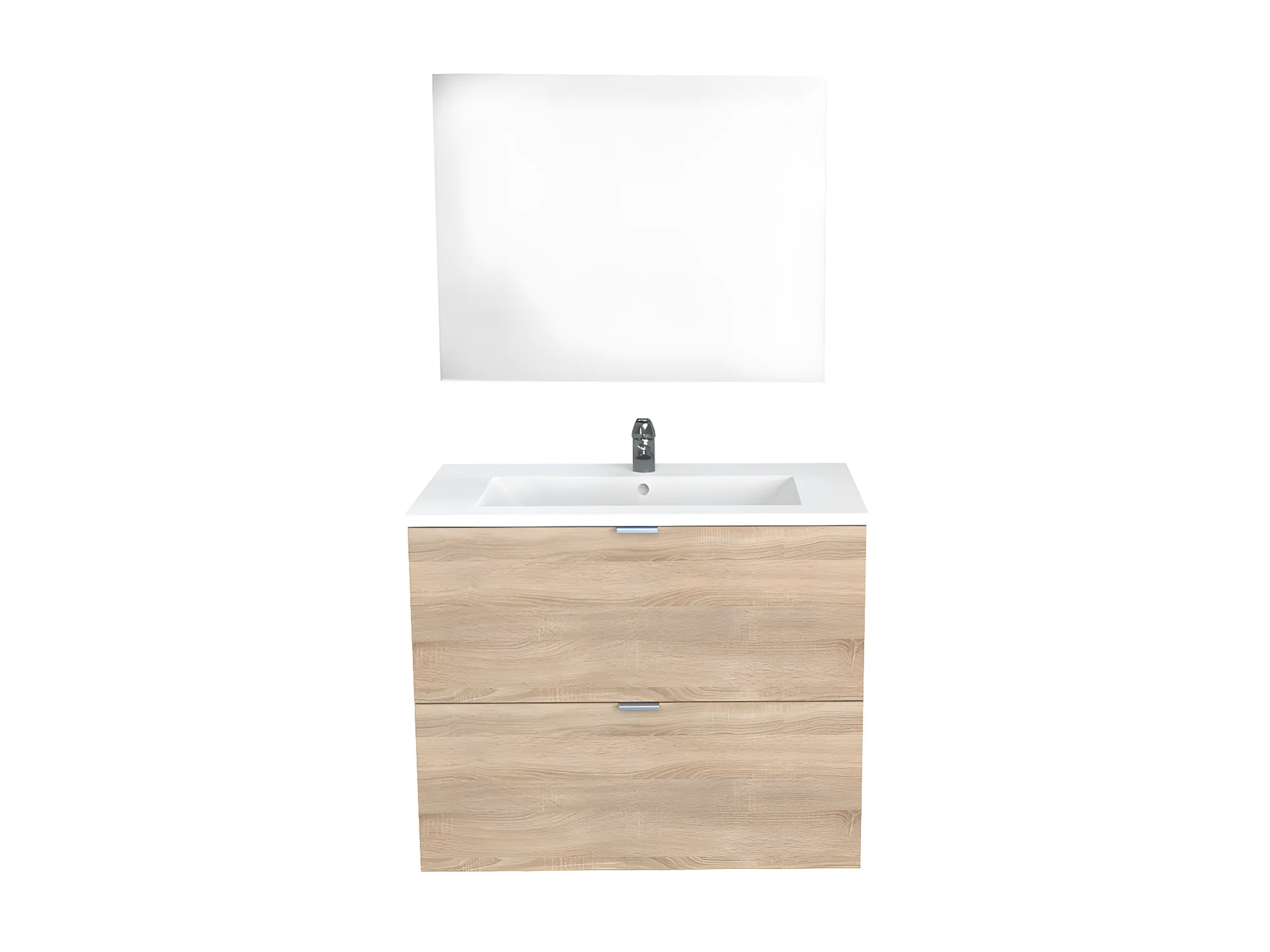 Meuble sous-vasque 2 tiroirs MALAGA 80 cm + vasque + miroir / Décor Chêne blanchi
