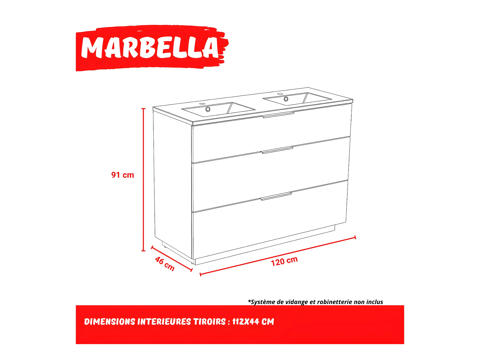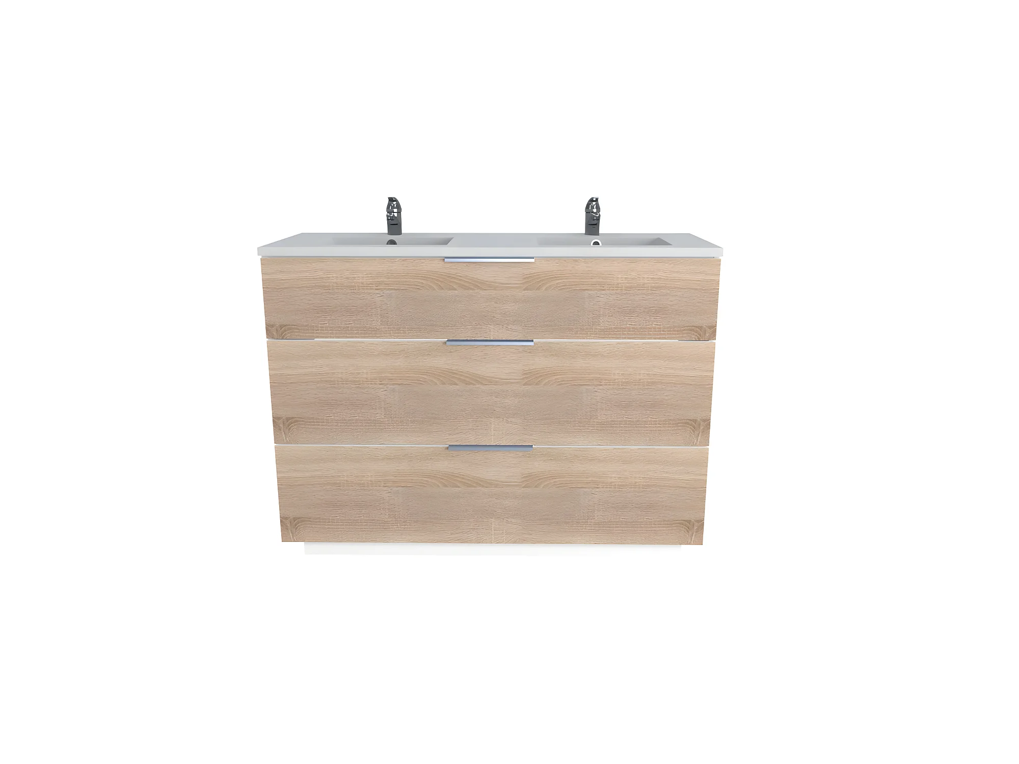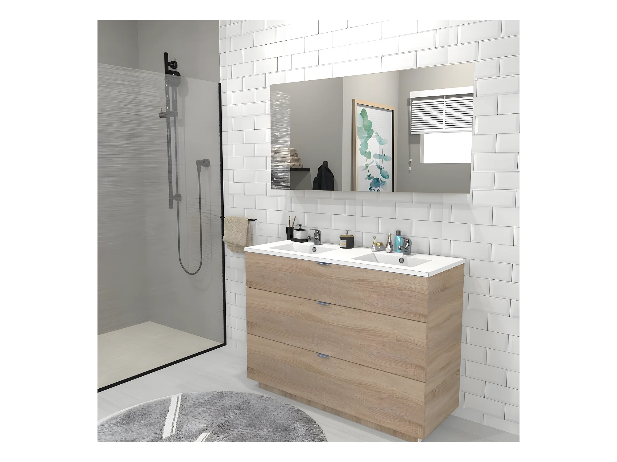 Meuble sous-vasque 3 tiroirs MARBELLA 120 cm + vasque / Décor Chêne blanchi