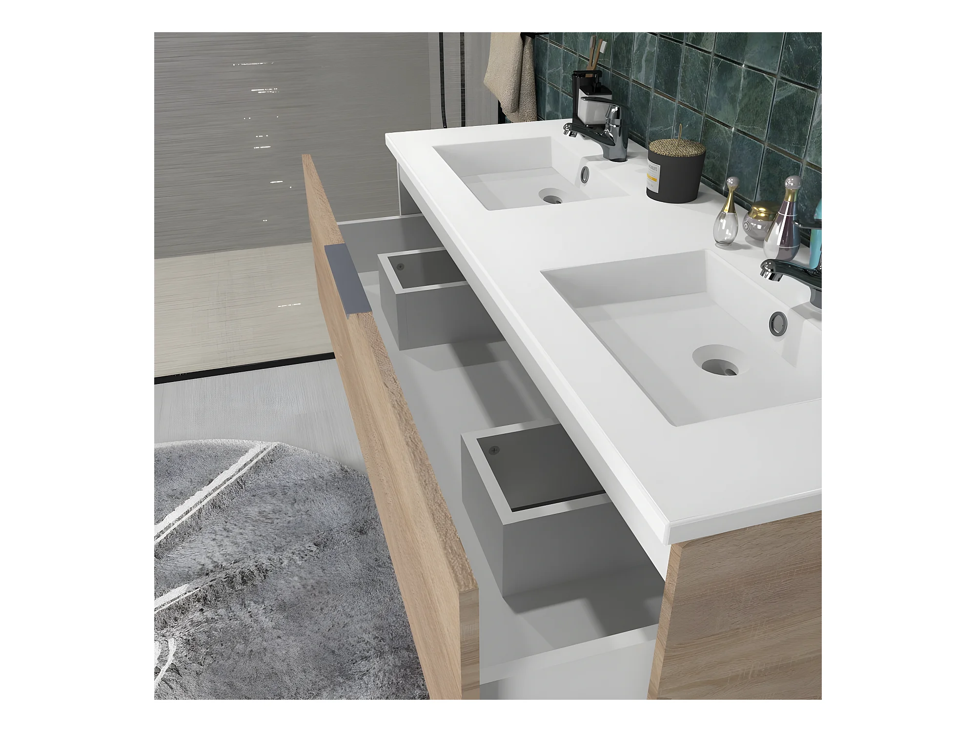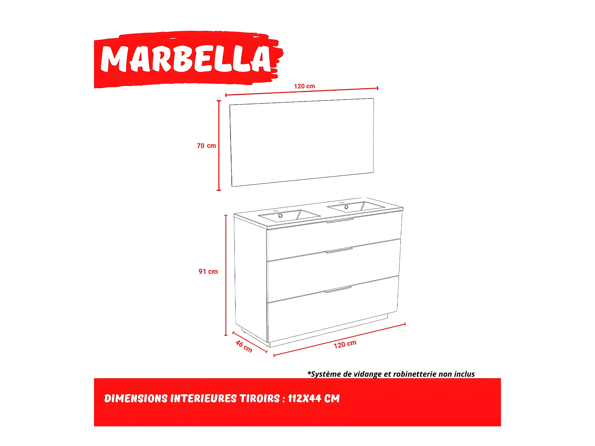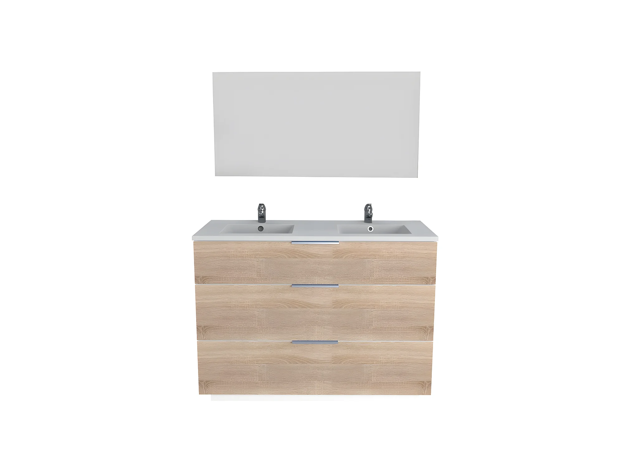 Meuble sous-vasque 3 tiroirs MARBELLA 120 cm + vasque + miroir / Décor Chêne blanchi