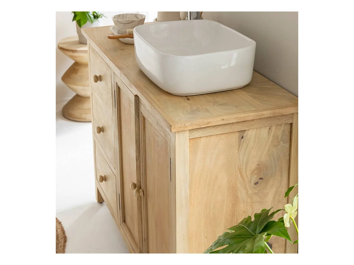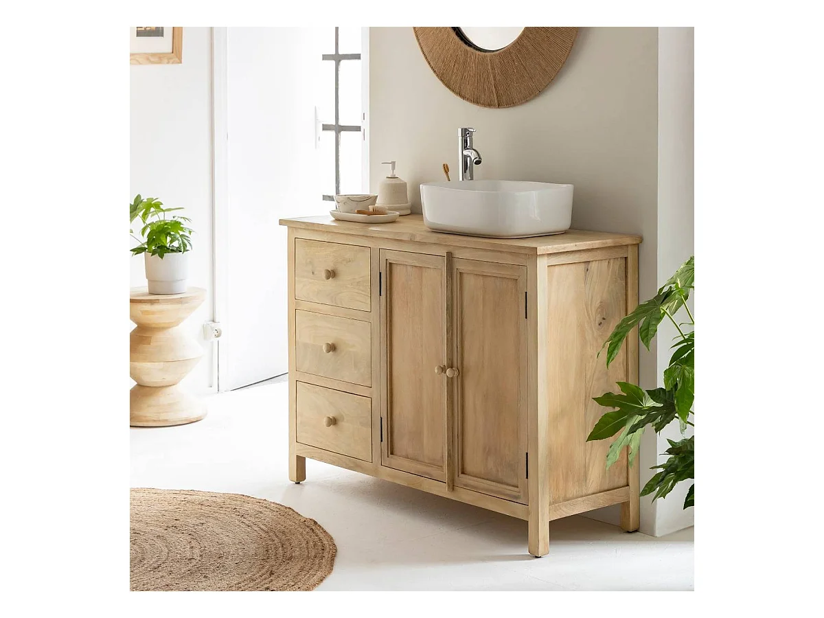Meuble sous vasque en bois de manguier blanchi Ronan