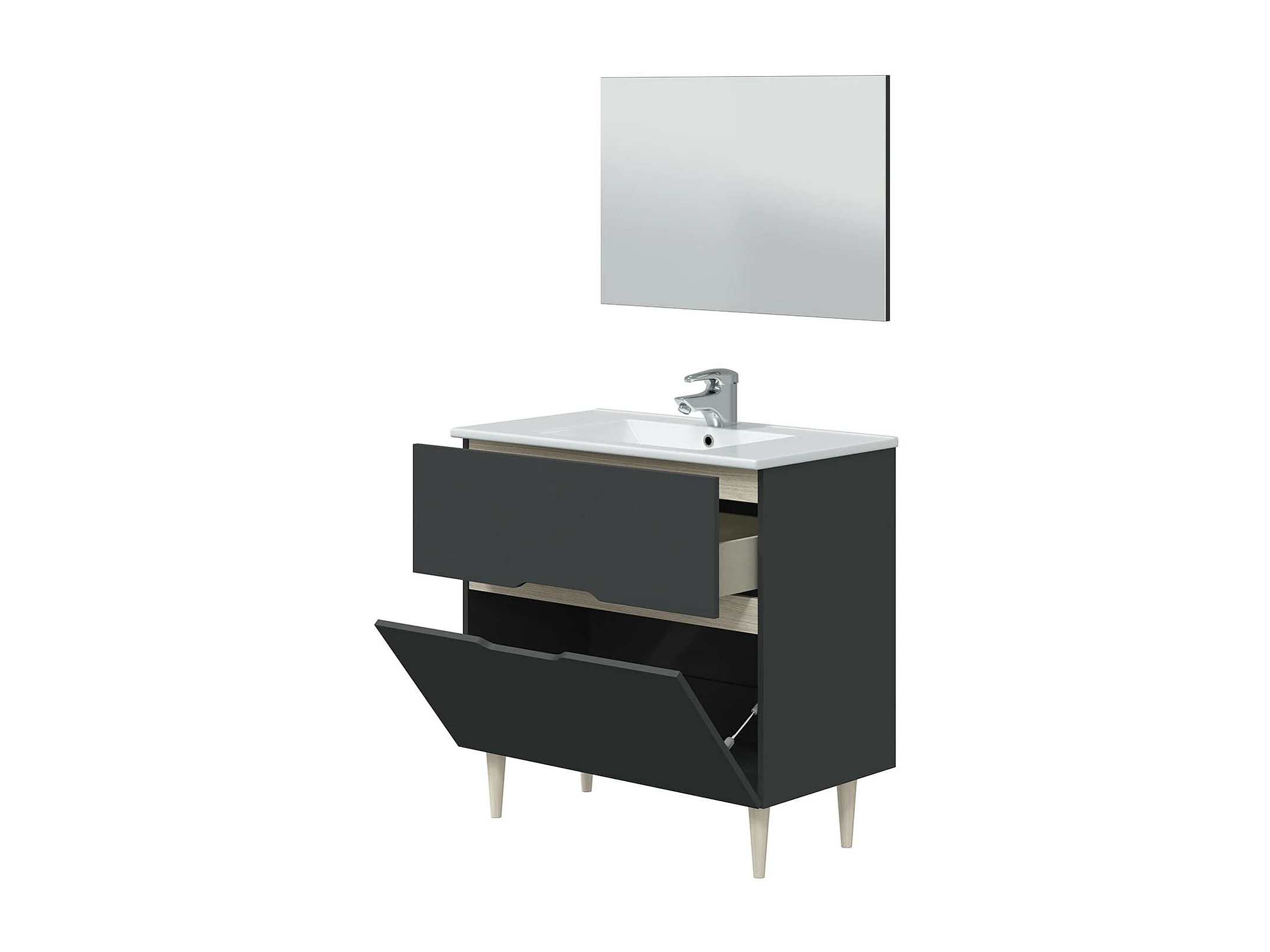 Meuble sous vasque en panneaux de particules mélaminés coloris noir avec miroir - Longueur 80 x Profondeur 45 x Hauteur 80 cm