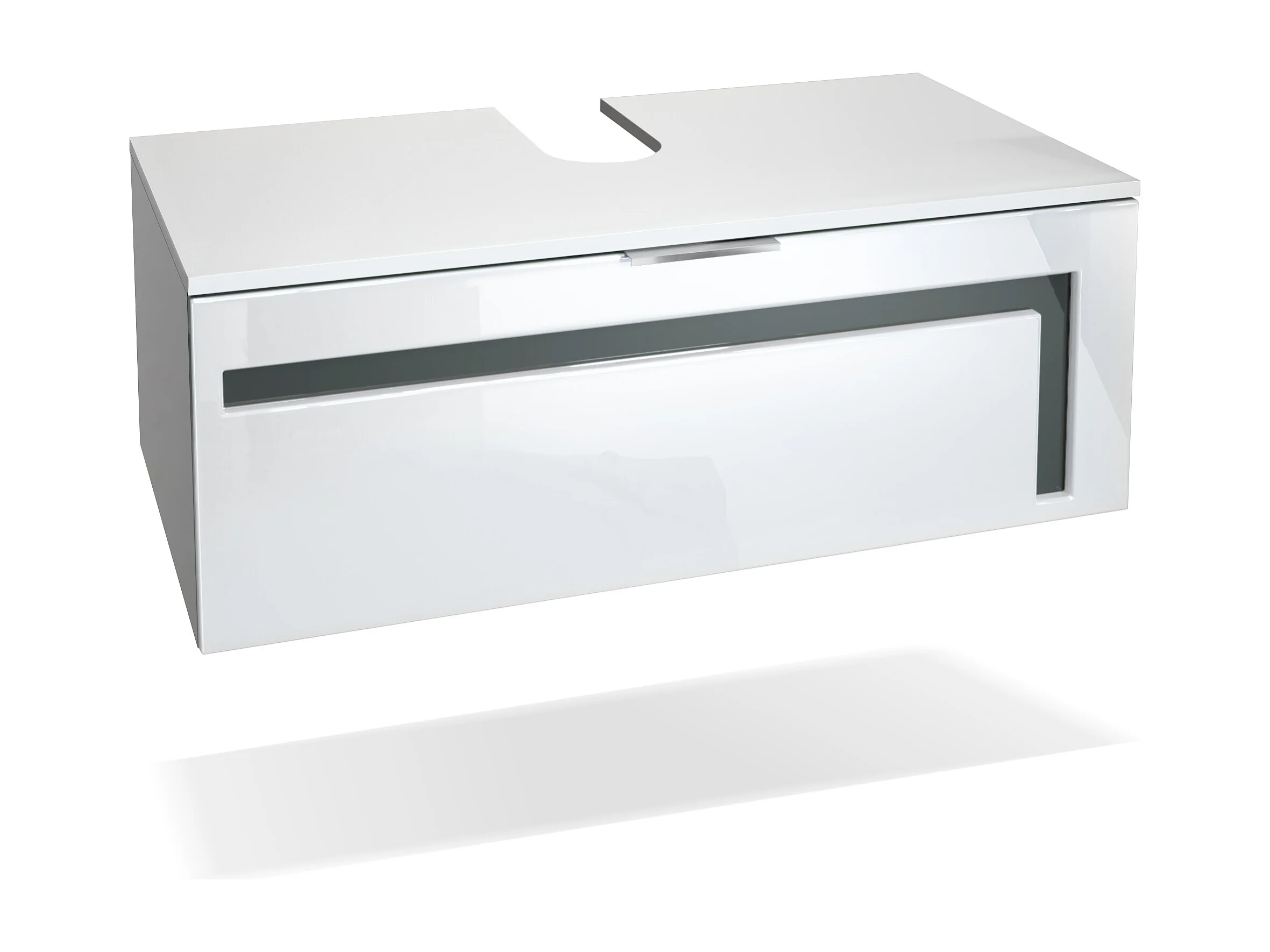 Meuble sous vasque Lavabo Aloha V2, Corps en Blanc mat / Façades en Blanc haute brillance avec un décor en Gris haute brillance