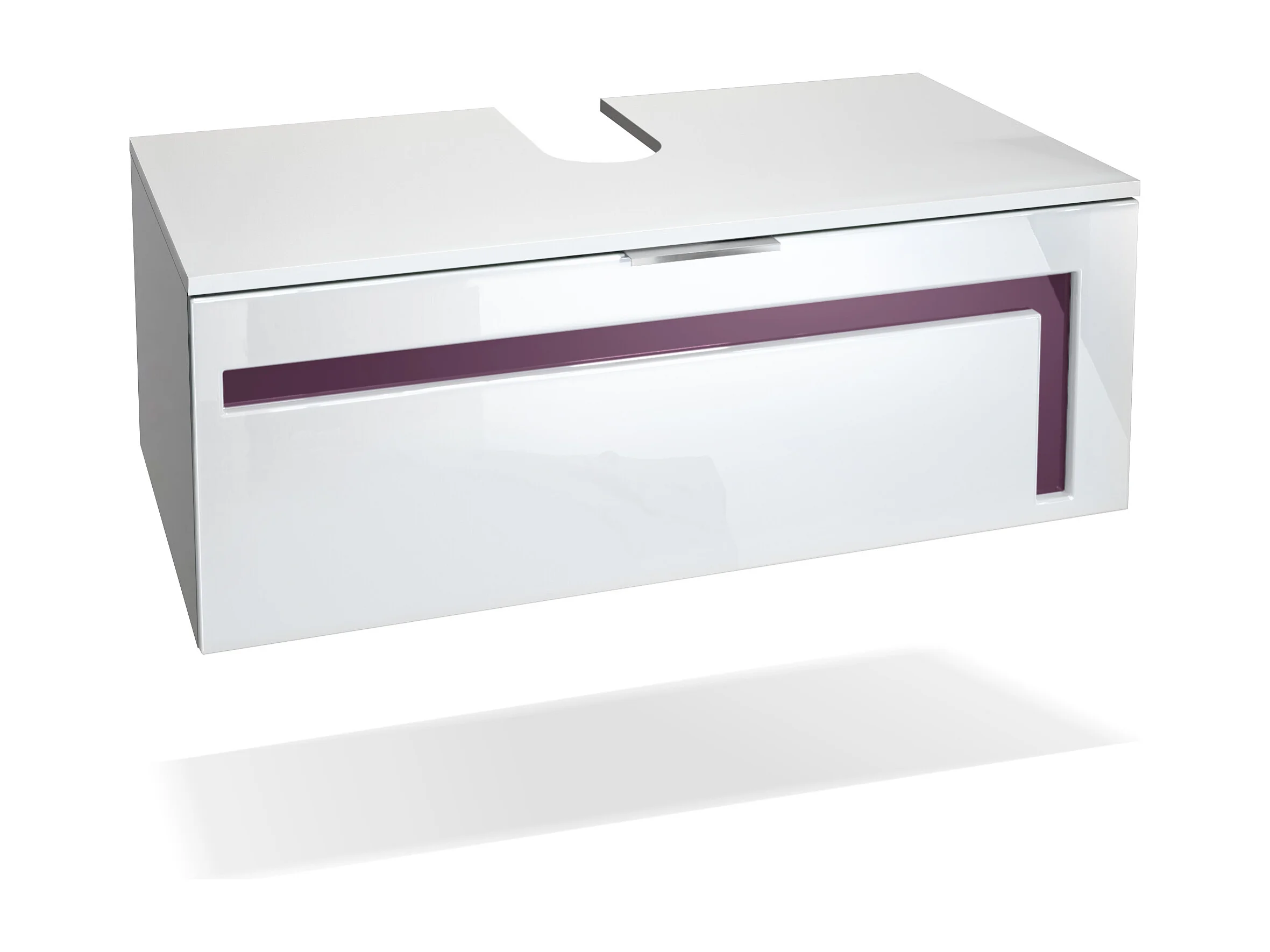 Meuble sous vasque Lavabo Aloha V2, Corps en Blanc mat / Façades en Blanc haute brillance avec un décor en Mûre haute brillance