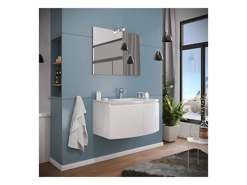 Meuble sous-vasque lumineux blanc "Ettore" 2-suede salle de bain avec LED specchio et lavabo en céramique cm 80x49 42h