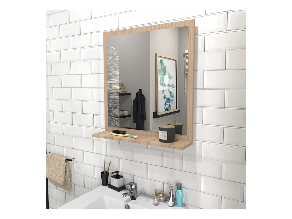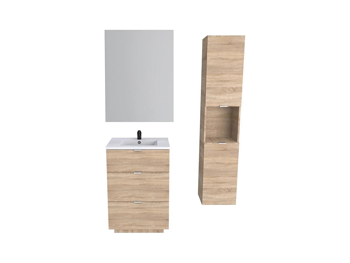 Meuble sous vasque MARBELLA 60 cm + vasque + miroir + colonne / Décor Chêne blanchi