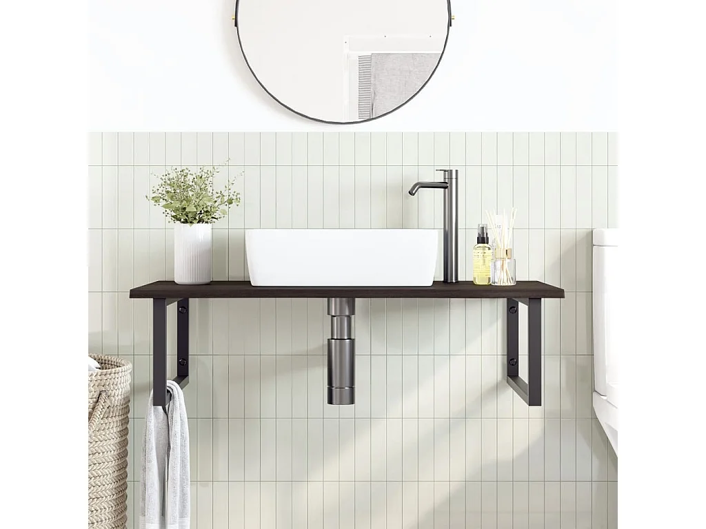 Meuble sous vasque murale acier et bois massif d'acacia FR721157