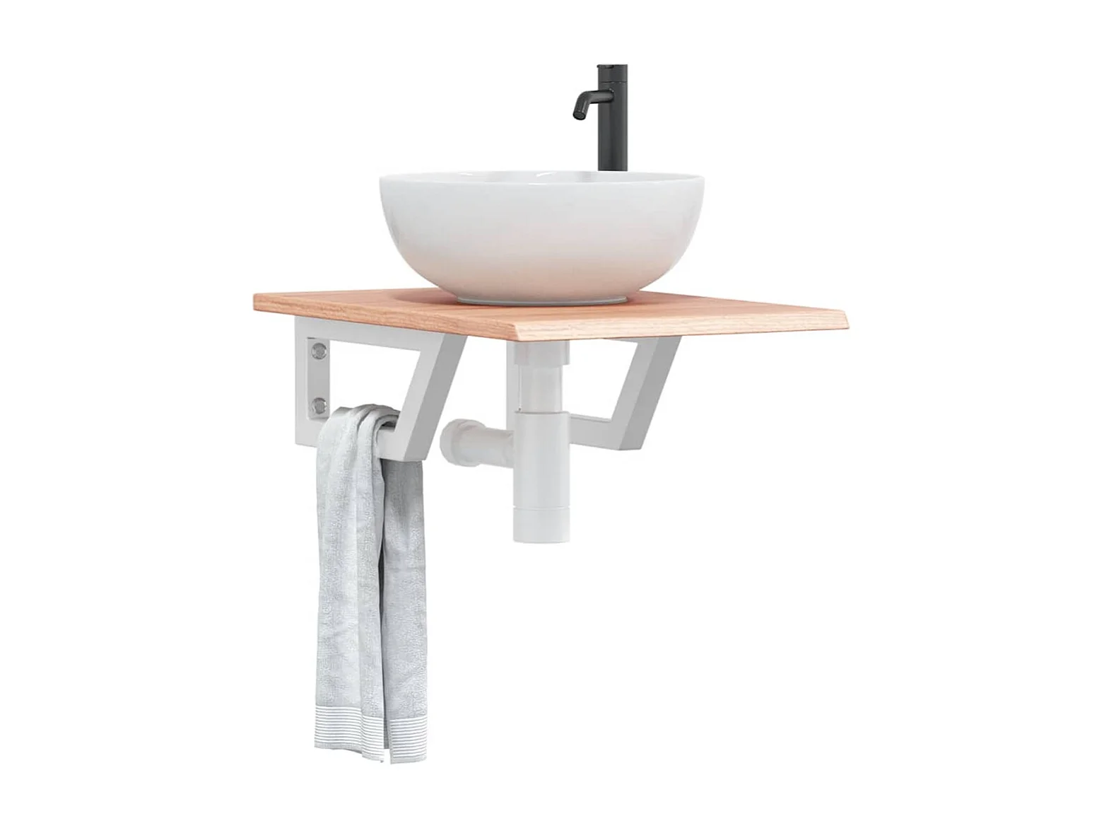 Meuble sous vasque murale acier et bois de chêne massif FR864299