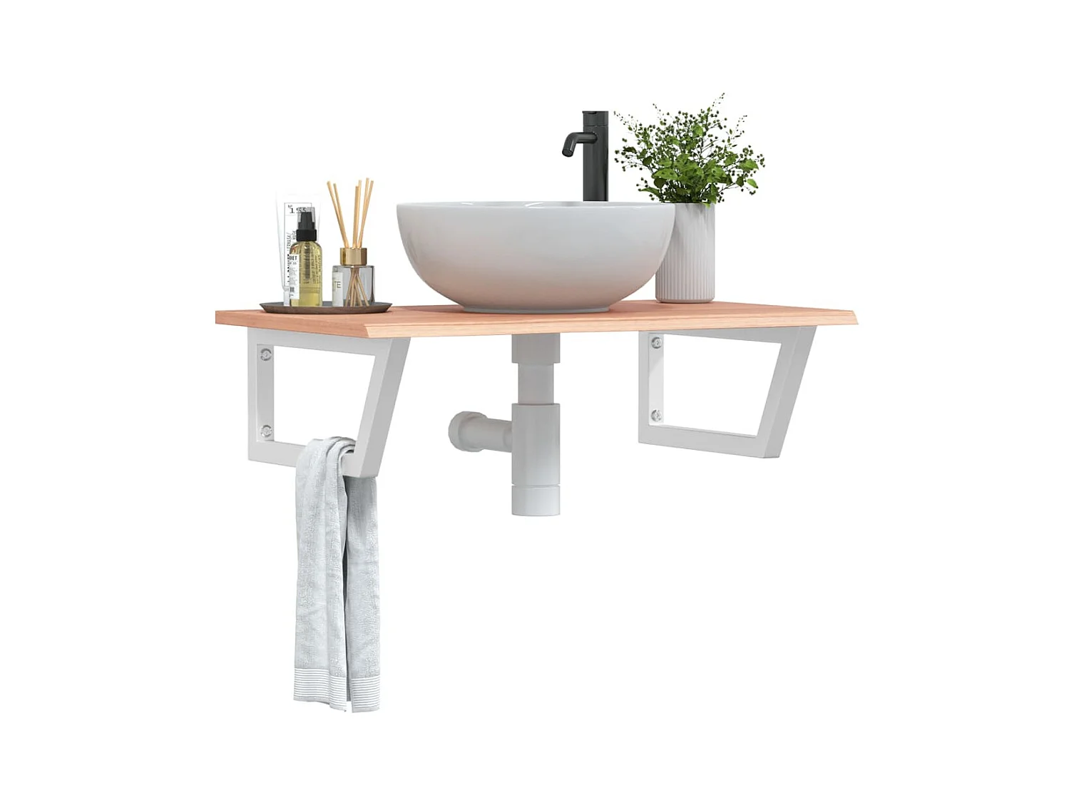 Meuble sous vasque murale acier et bois massif d'acacia FR719046