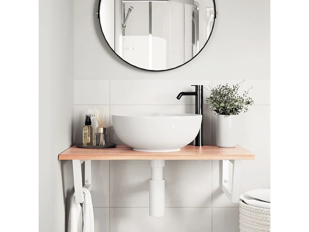 Meuble sous vasque murale acier et bois massif d'acacia FR375854