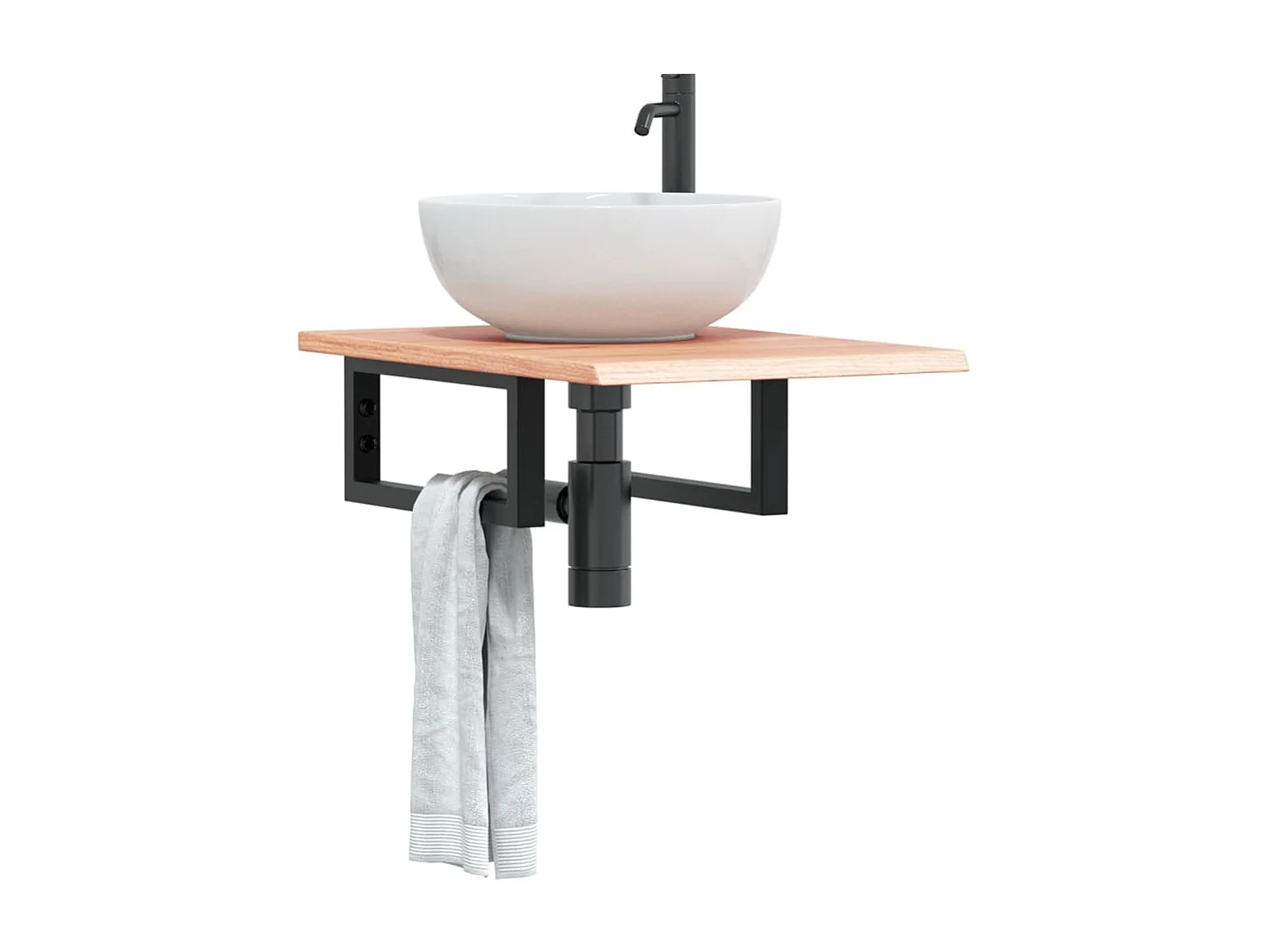 Meuble sous vasque murale acier et bois de chêne massif FR864299