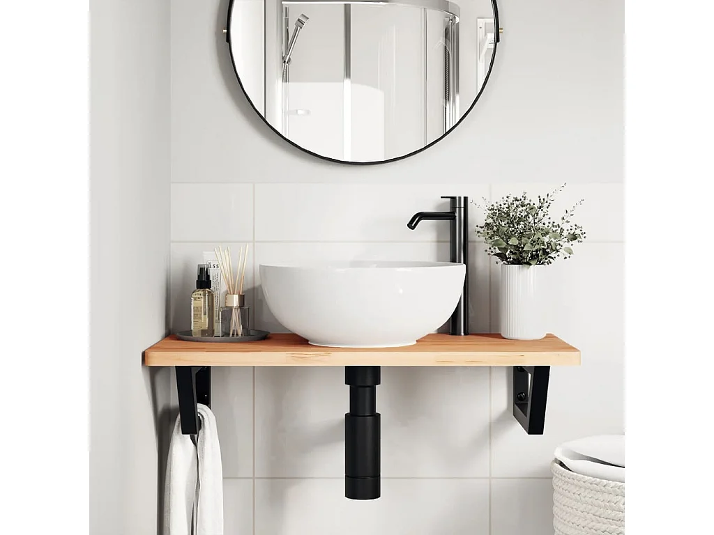 Meuble sous vasque murale acier et bois massif de hêtre FR886063