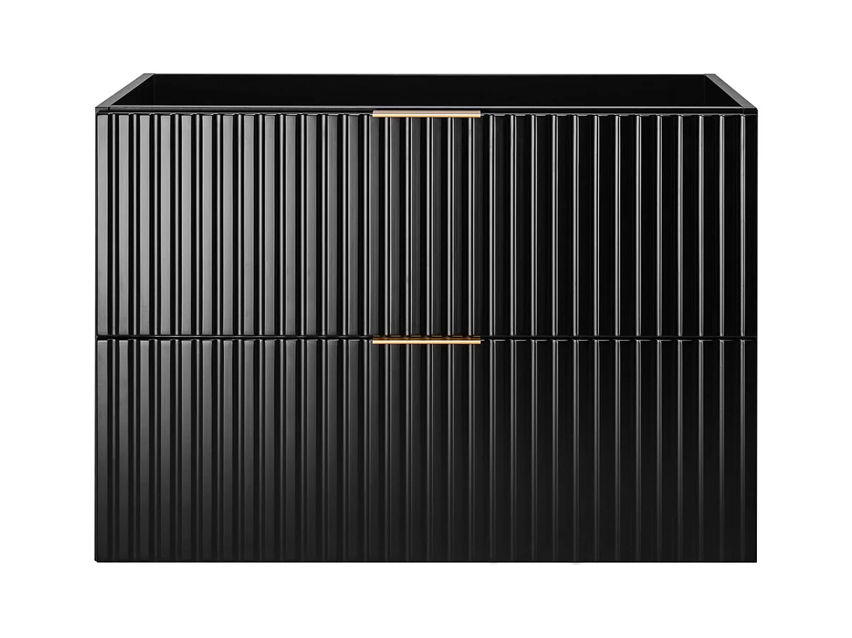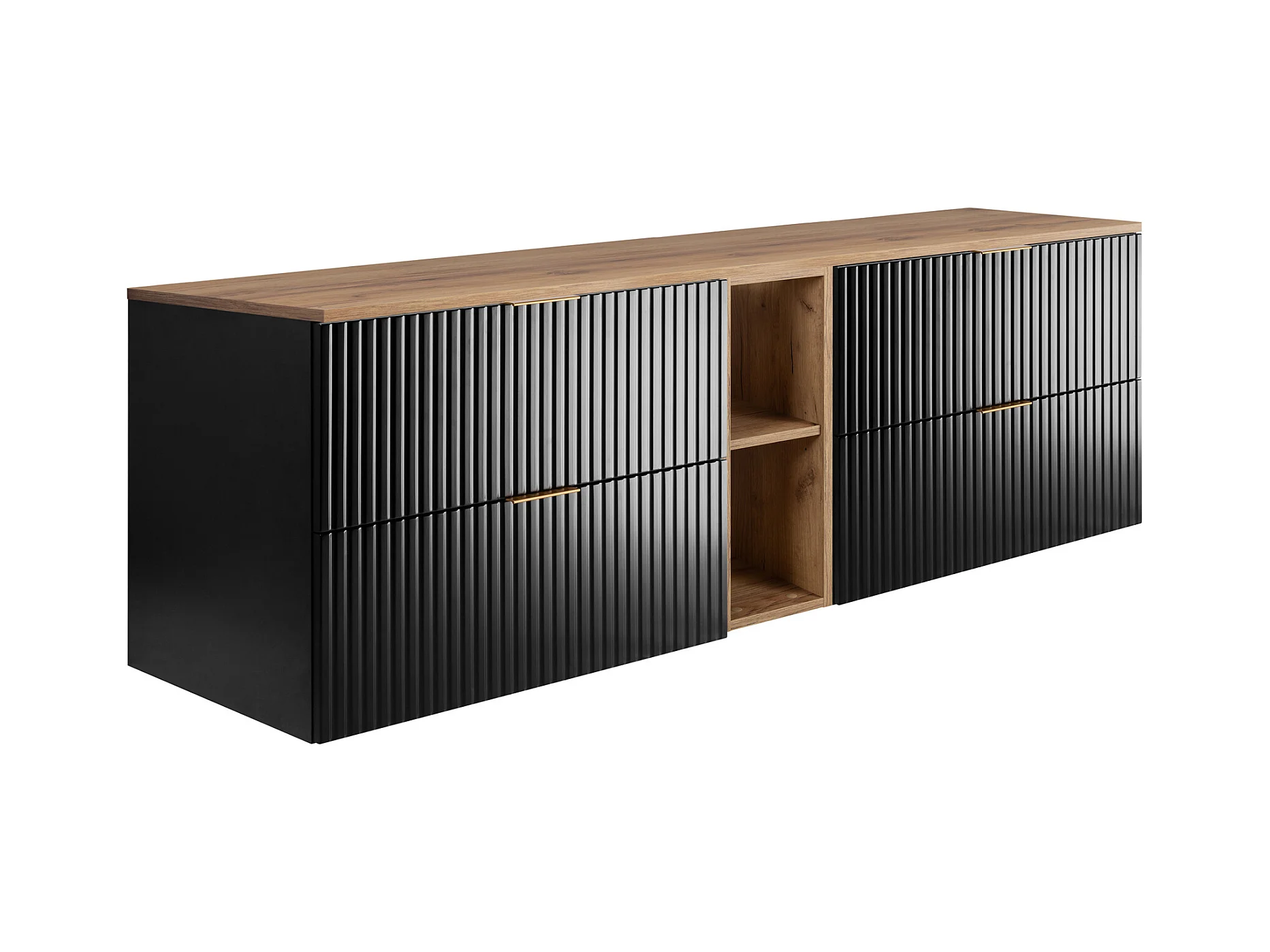 Meuble sous vasque noir FLOW 180 cm avec étagère et plan de travail chêne craft doré