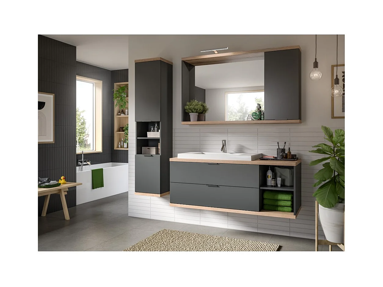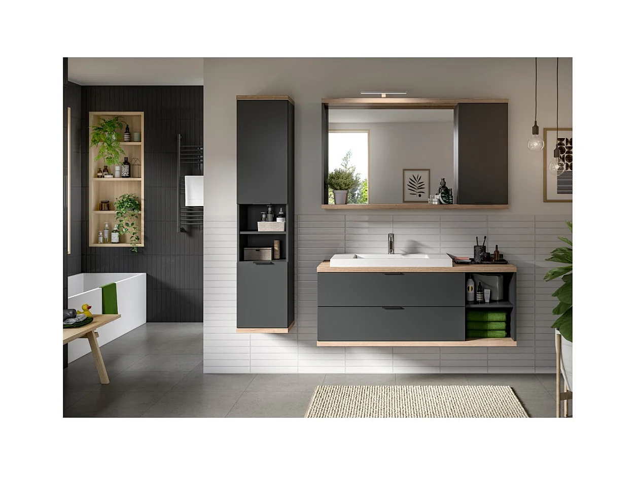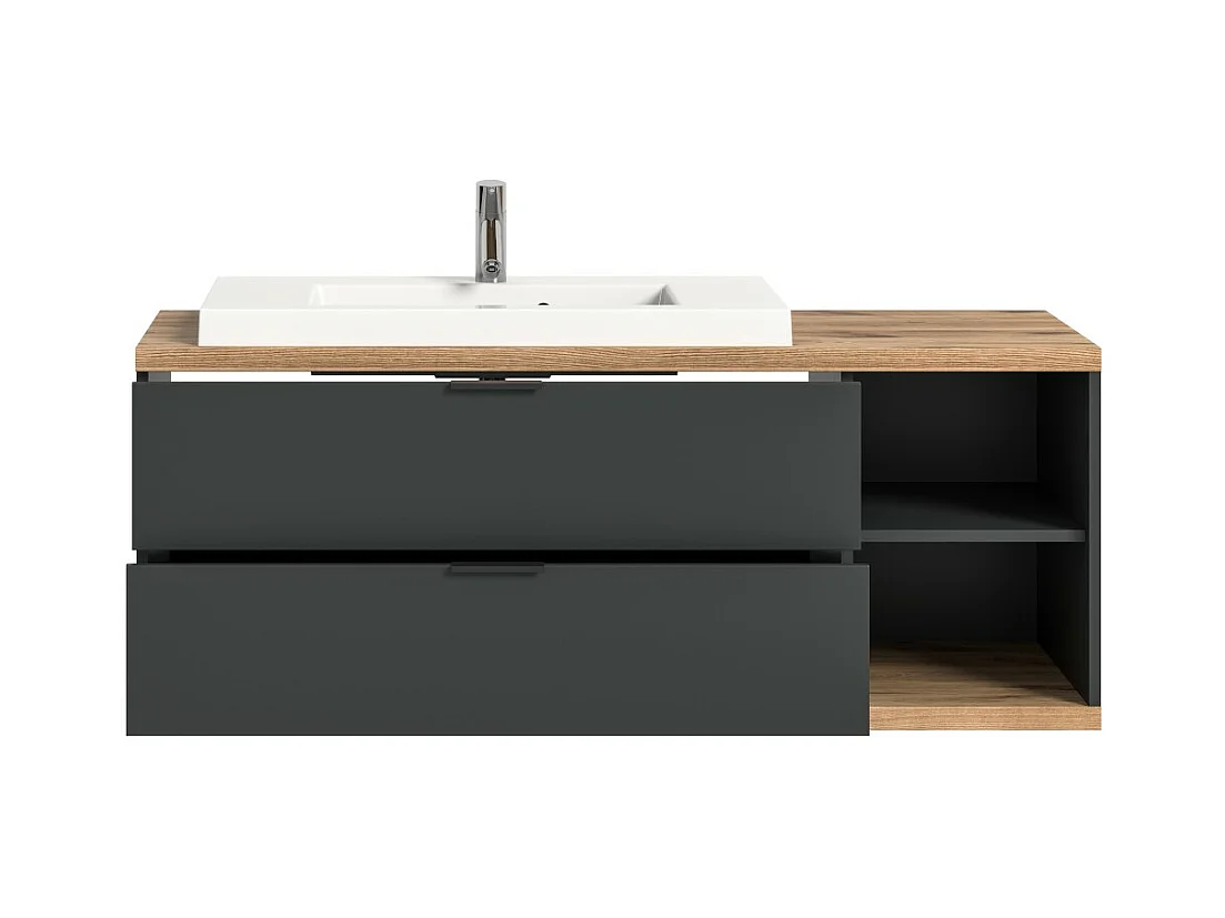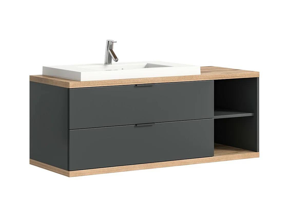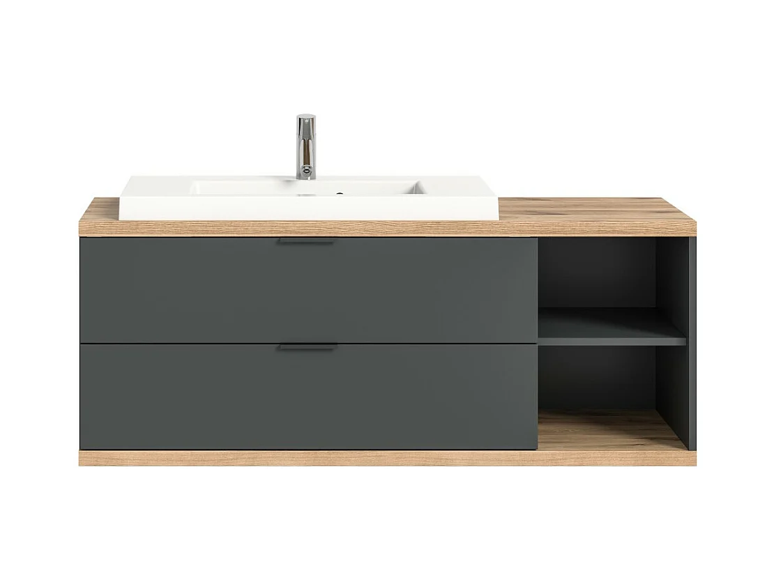 Meuble sous vasque NOYA gris à suspendre – 2 tiroirs + niche, 130 cm, sans vasque