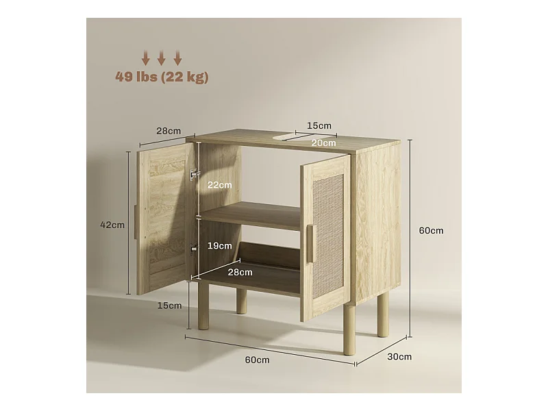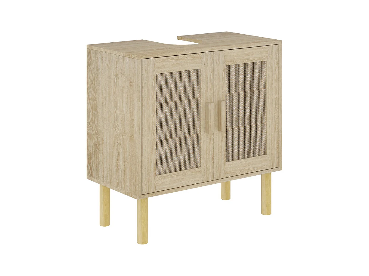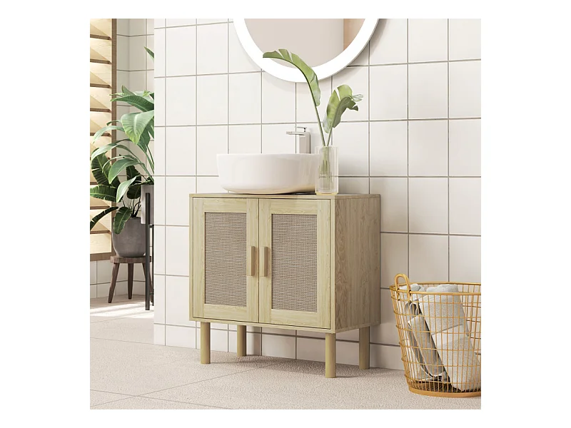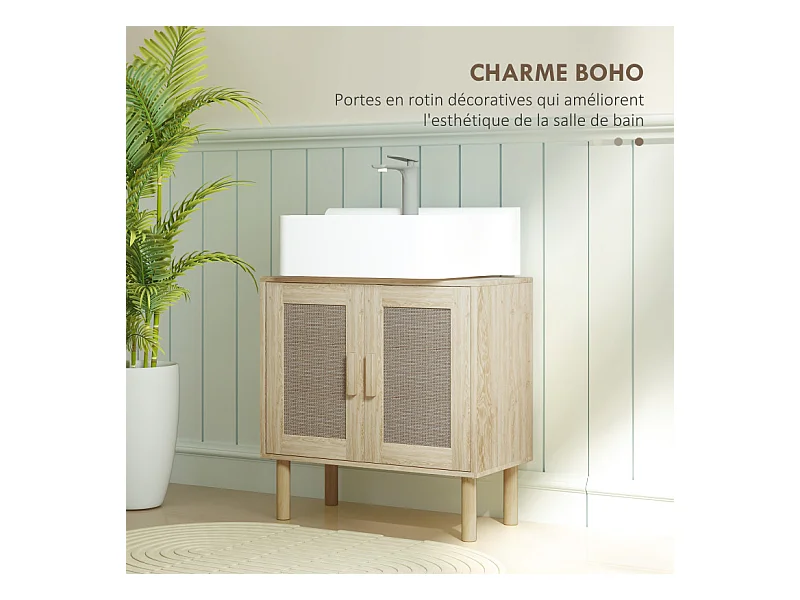 Meuble sous vasque style bohème RINOA effet rotin bois clair