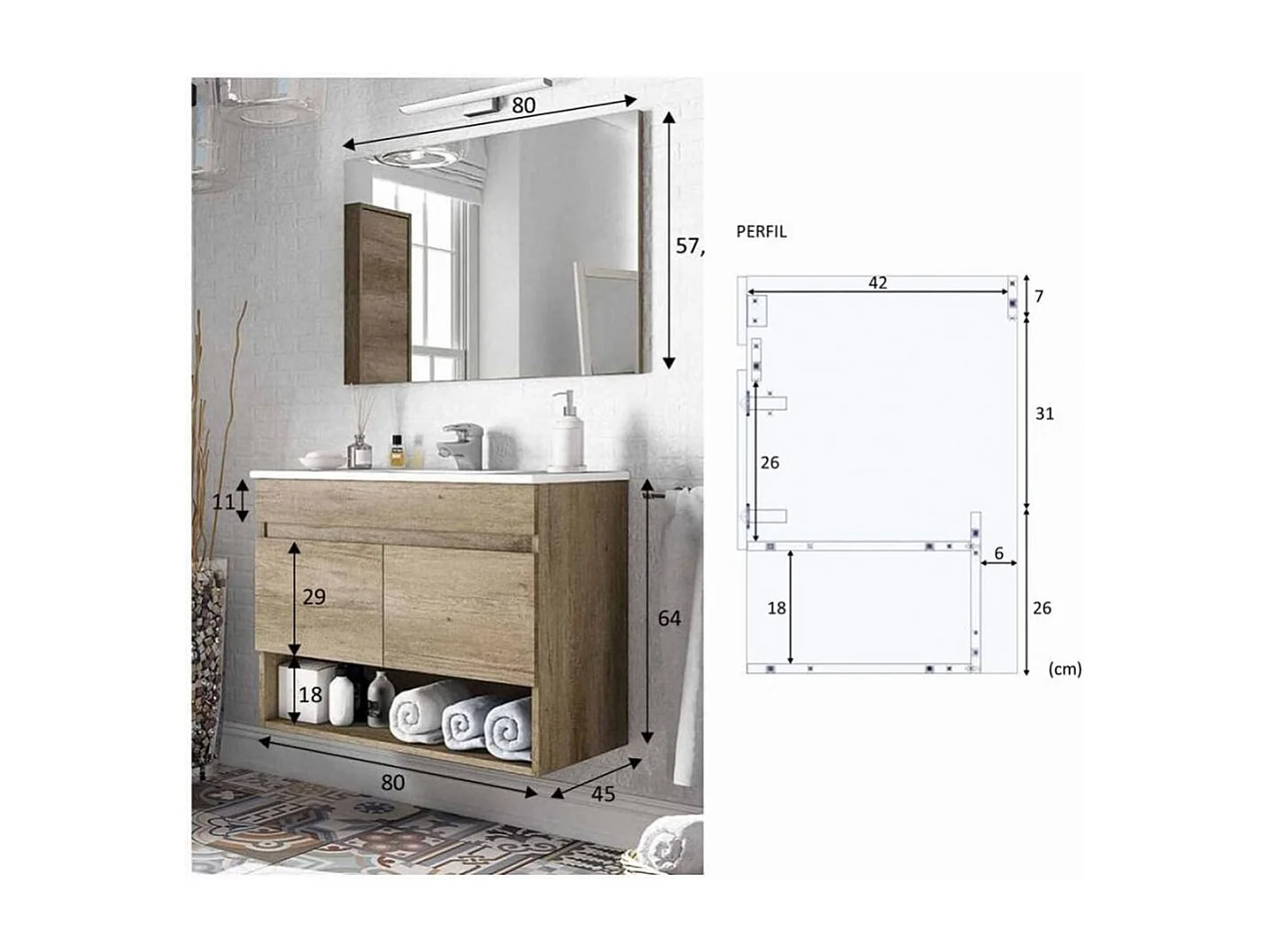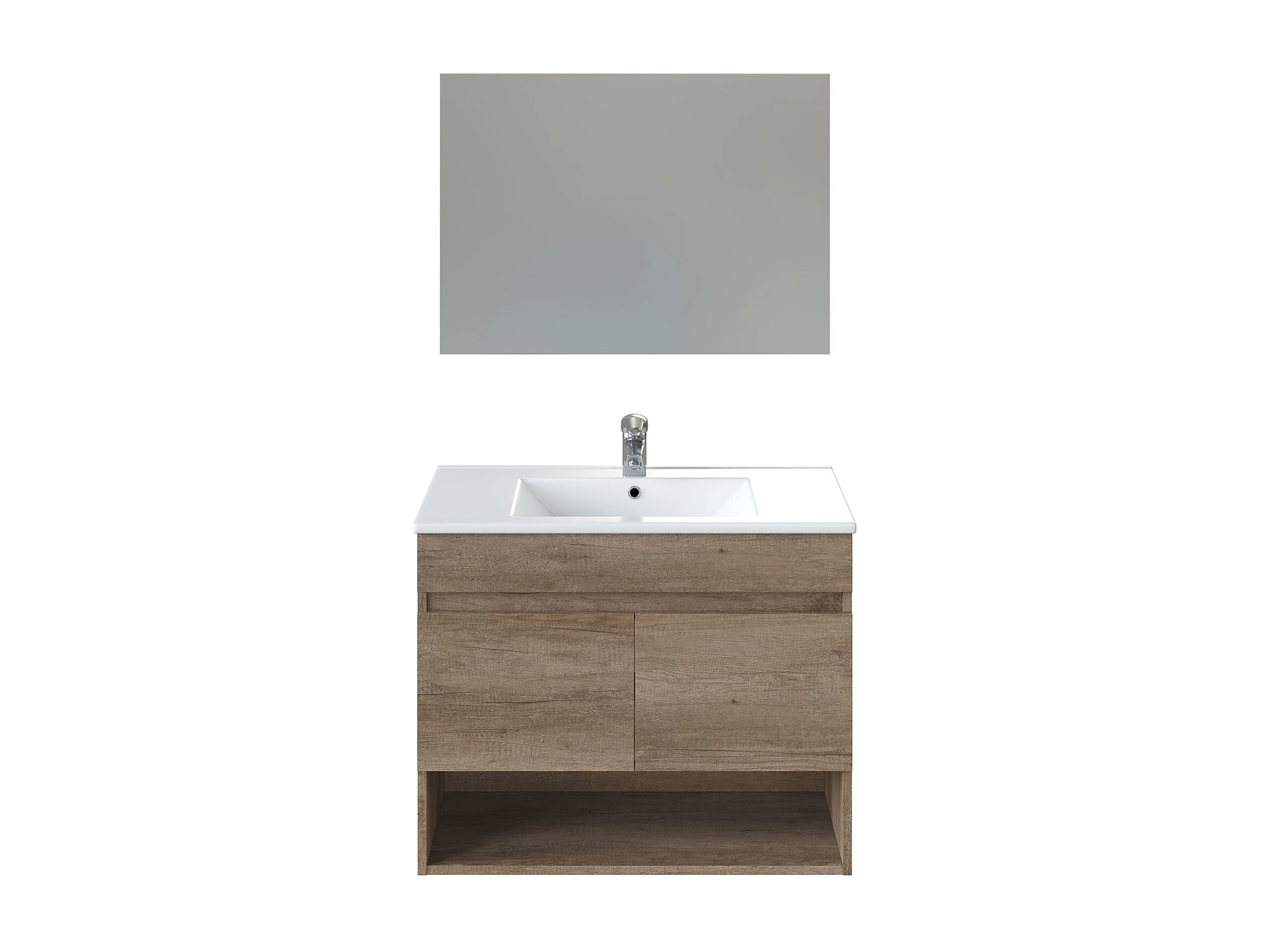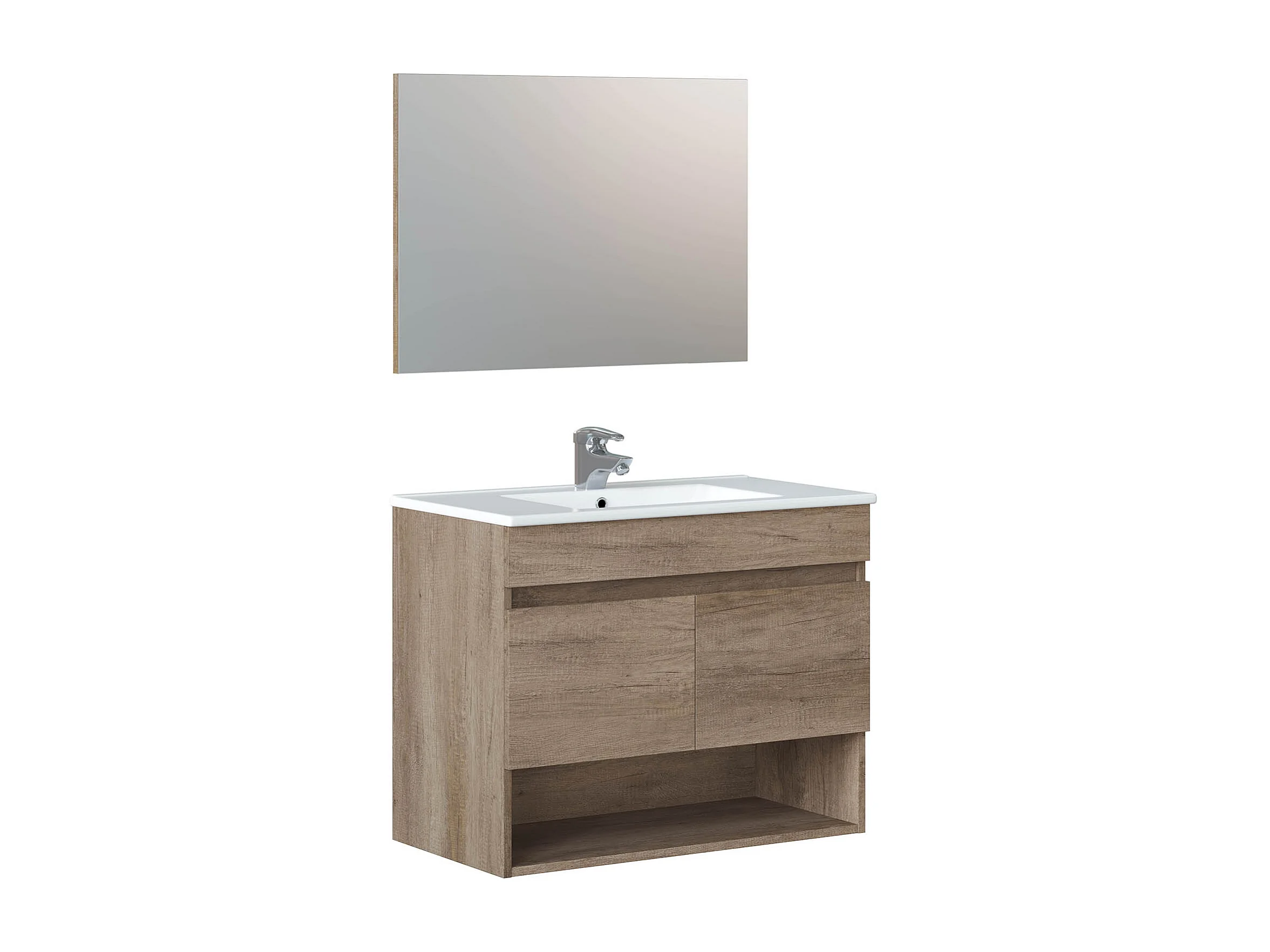 Meuble sous-vasque suspendu, 2 portes + Miroir finition nordik - 64x80x45cm