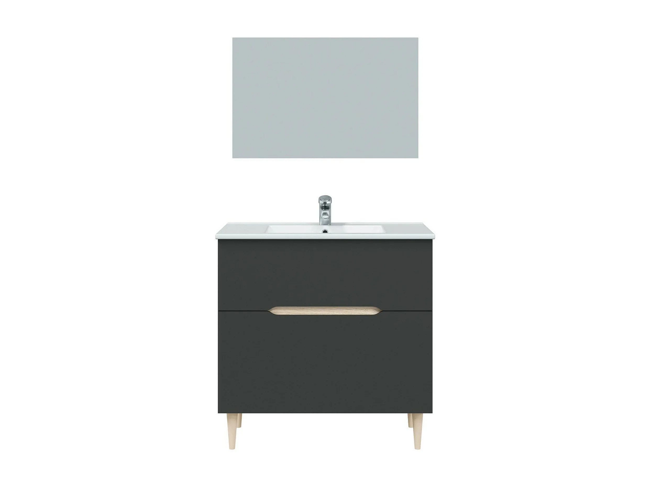 Meuble sous-vasque Yarmouth, Meuble sous-vasque de salle de bain, Meuble sous-vasque avec miroir, Lavabo non inclus, 80x45h80 cm, Anthracite et Chêne