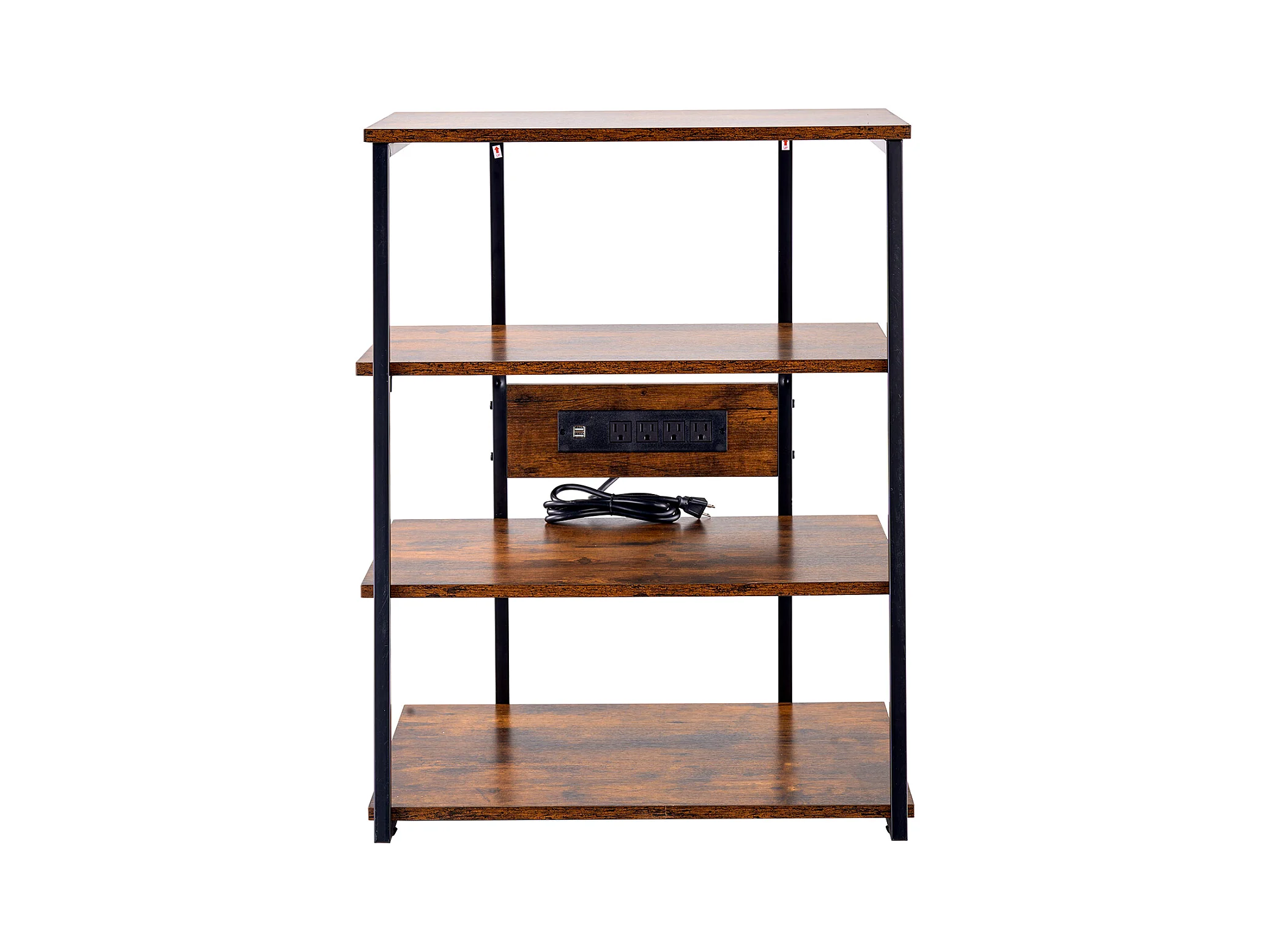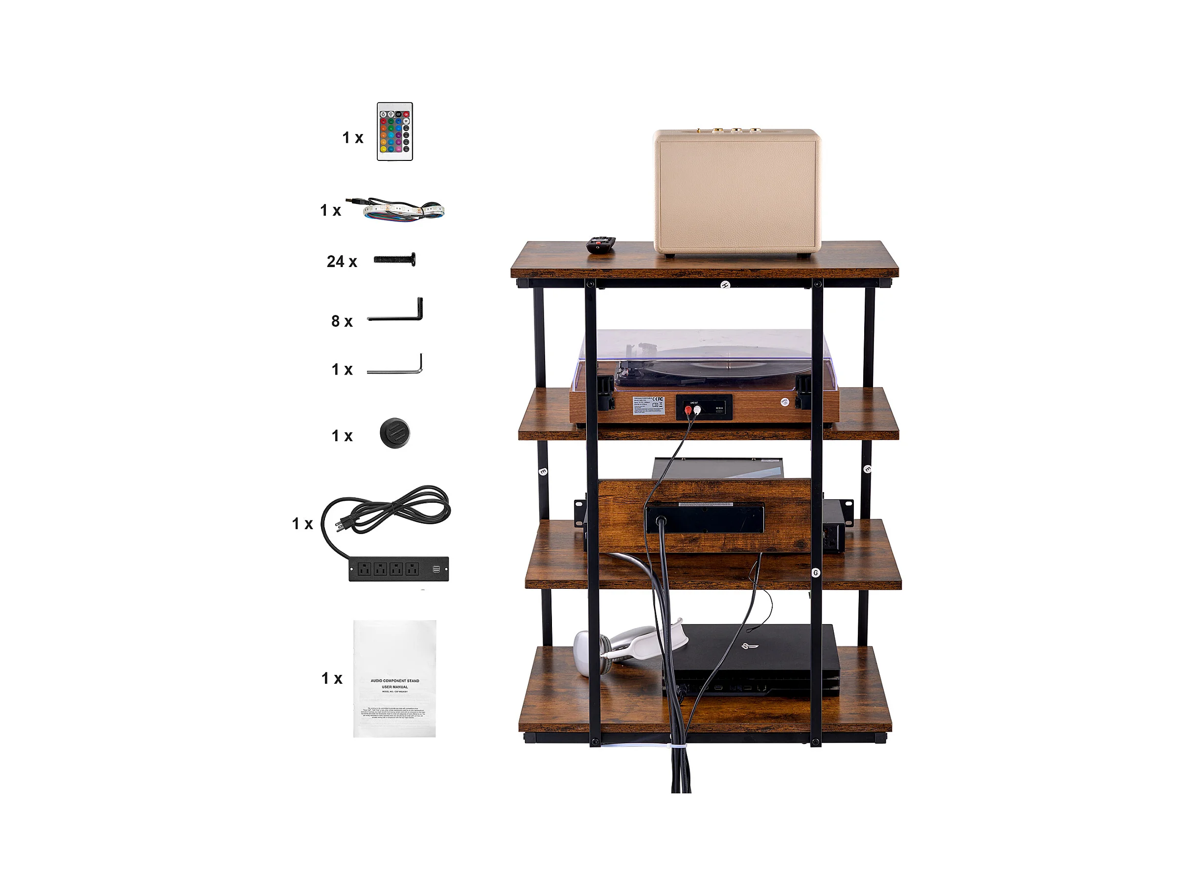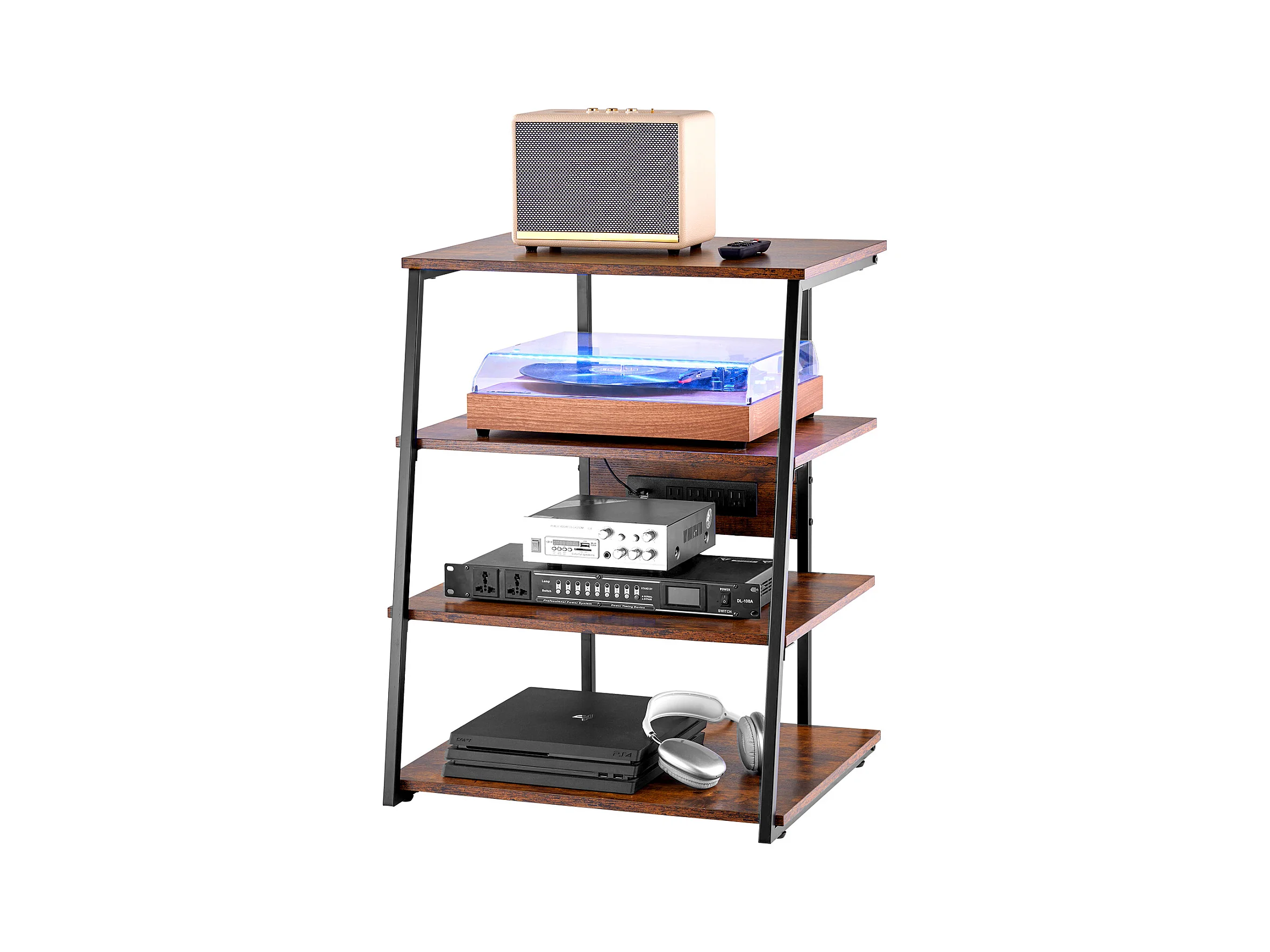 Meuble SucceBuy Support Multimédia AV à 4 Niveaux avec Multiprises, Support TV d'Angle LED en Bois
