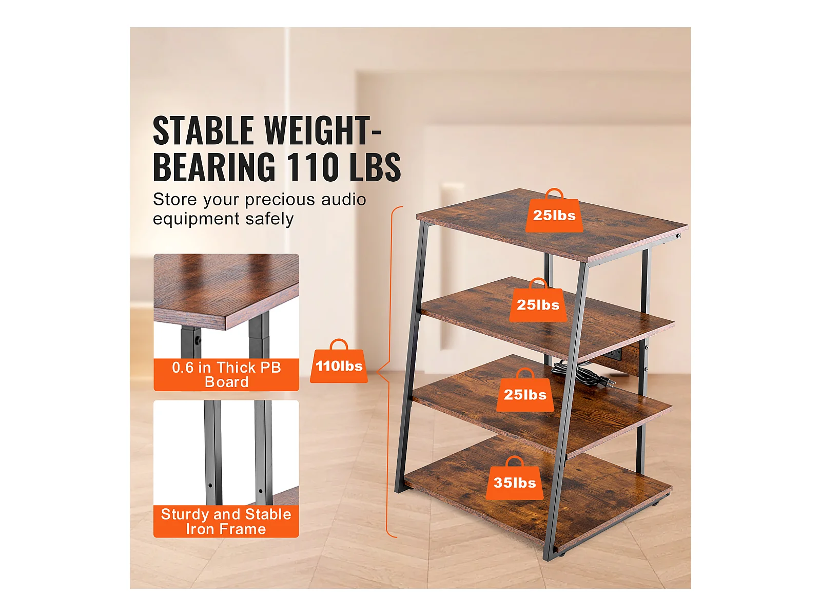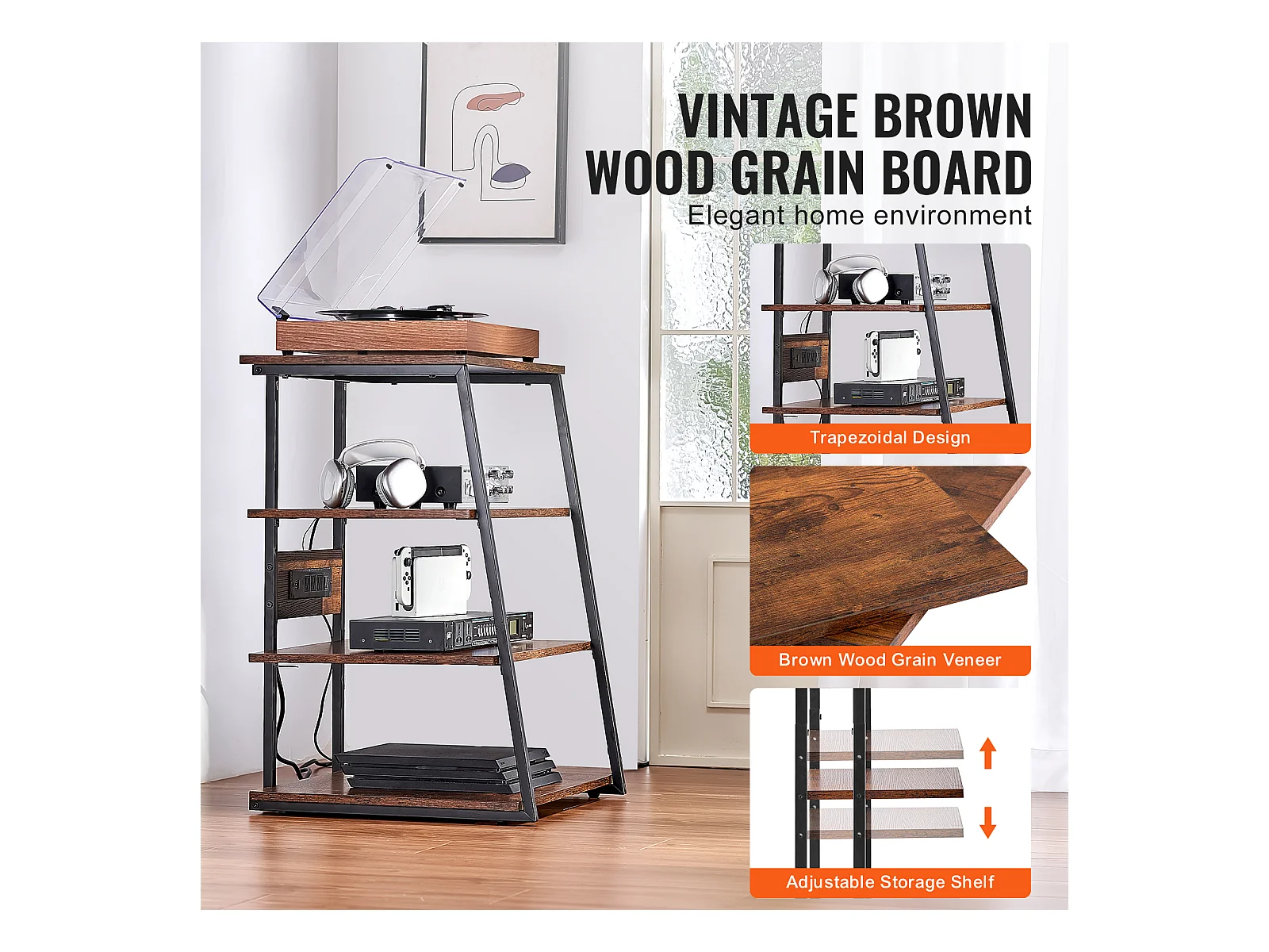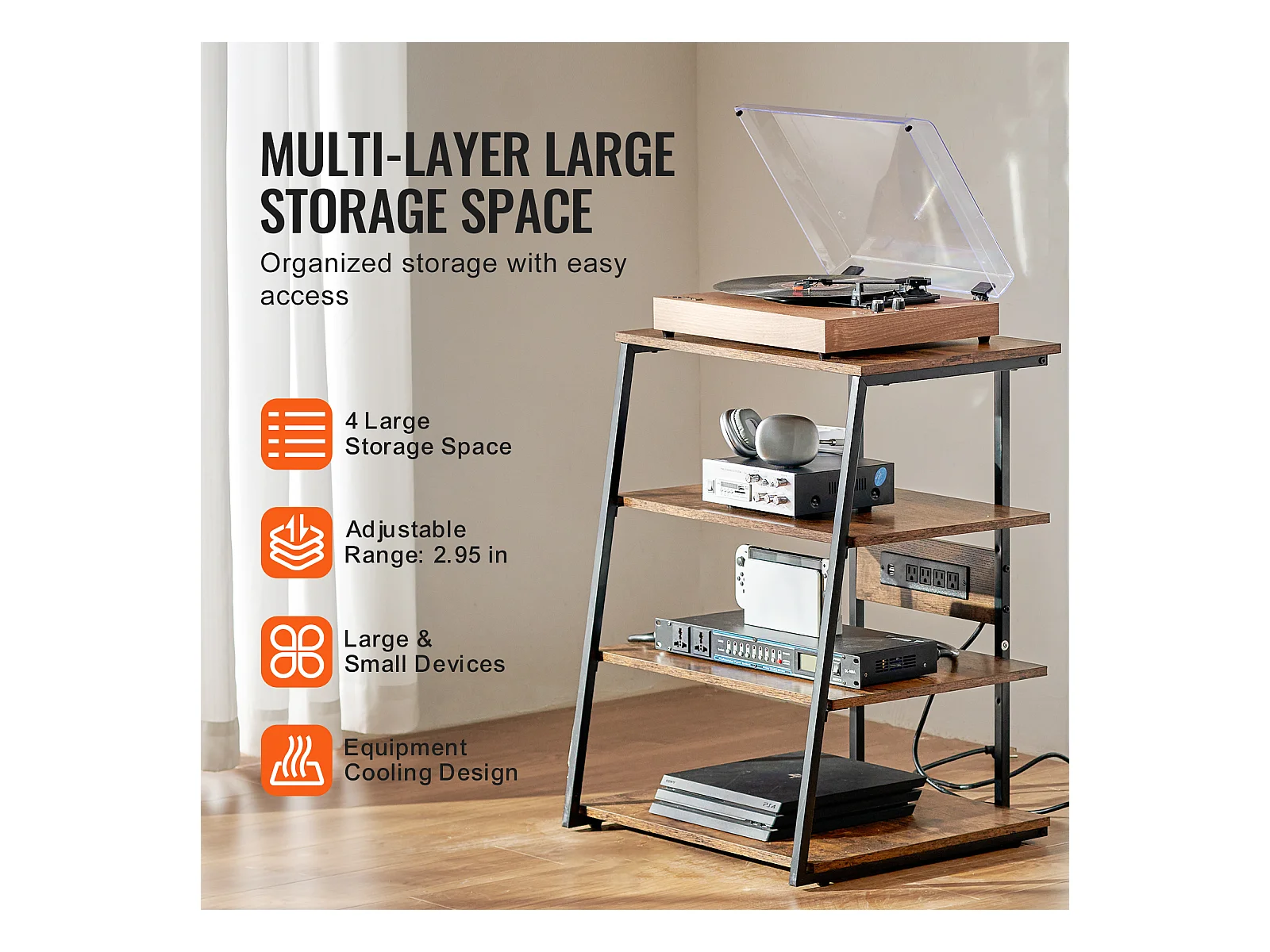 Meuble SucceBuy Support Multimédia AV à 4 Niveaux avec Multiprises, Support TV d'Angle LED en Bois