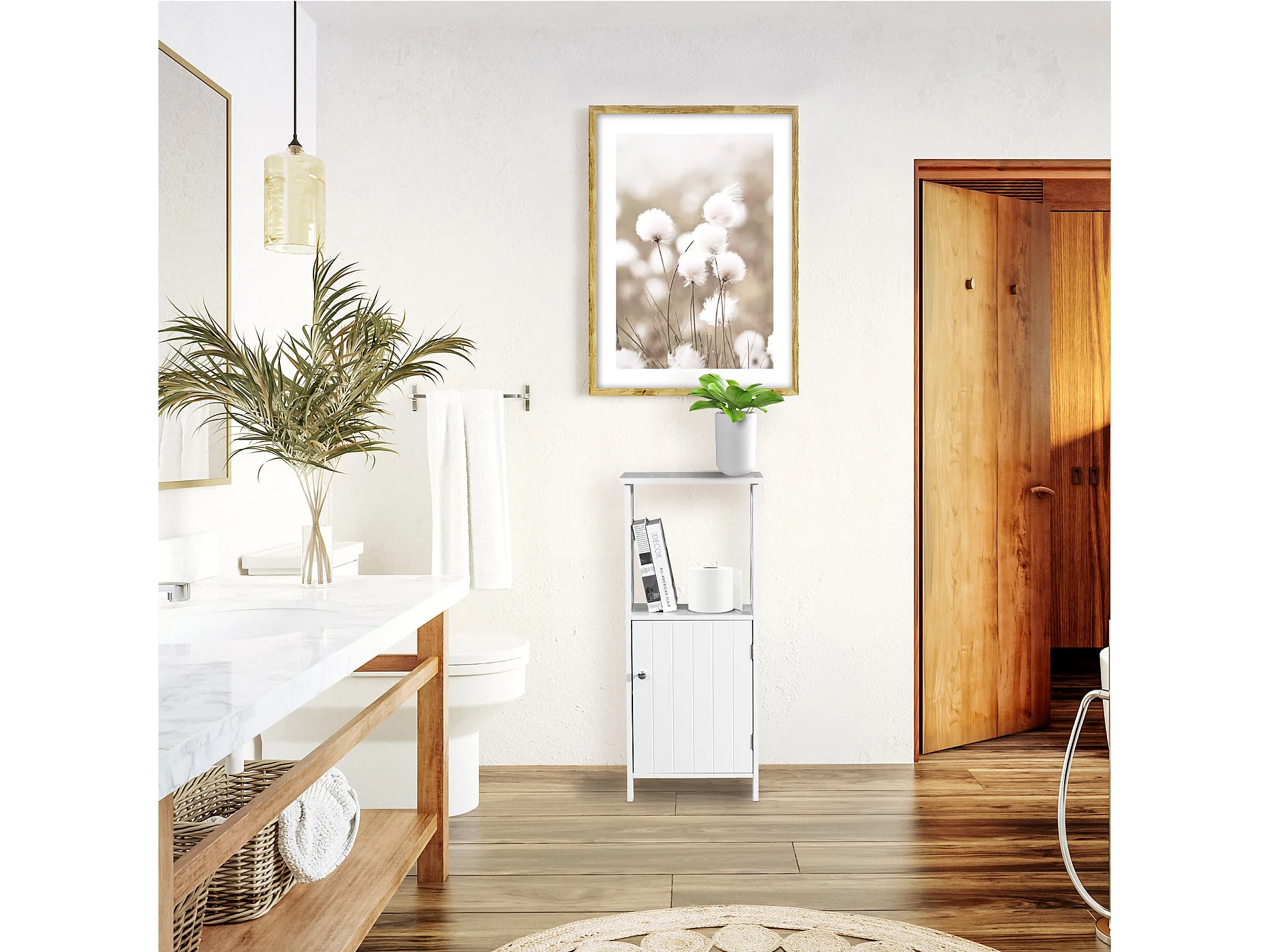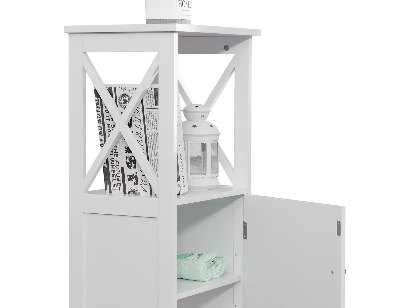 Meuble sur pied Meuble en bois blanc avec étagères pour salle de bains