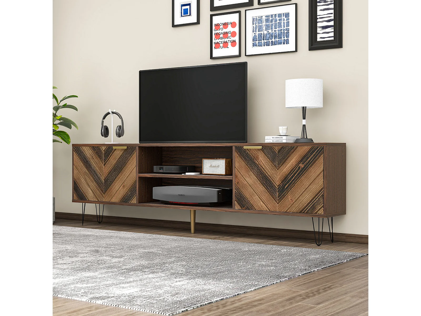 Meuble télé Meuble TV Bas avec 2 Portes et 2 Rangement Ouverts, pour Salon Chambre à Coucher Bureau